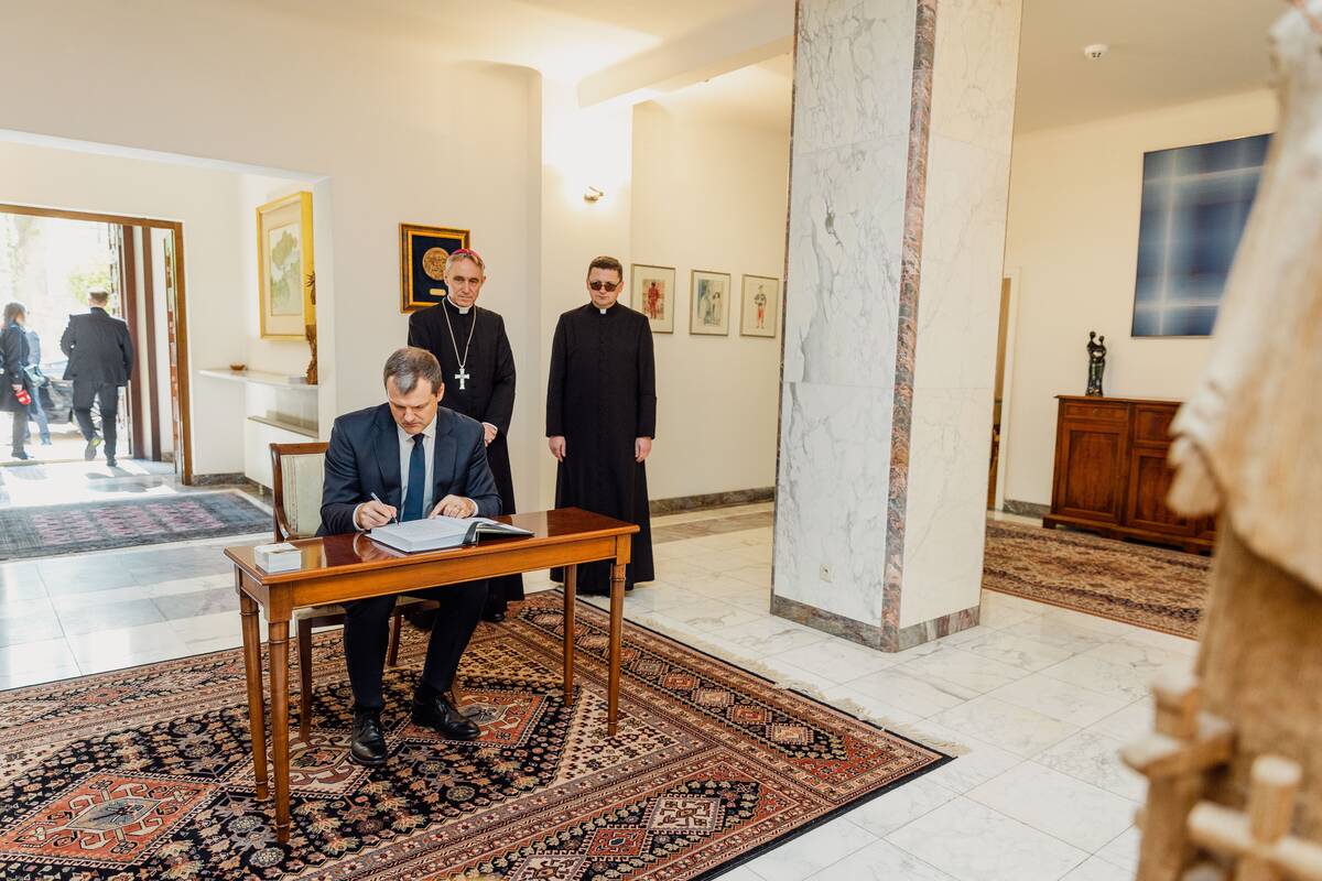 Pasirašymas užuojautų knygoje popiežiaus Pranciškaus atminimui pagerbti