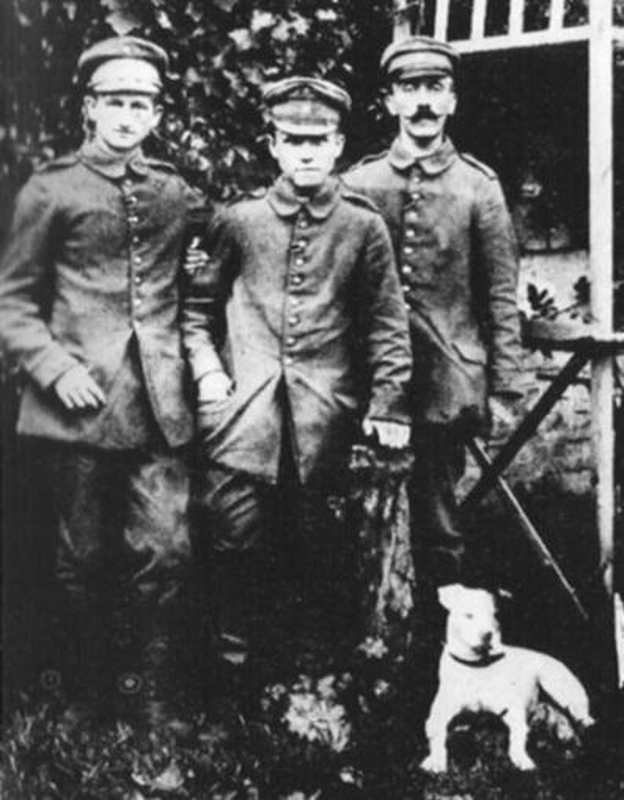 Būsimasis nacių fiureris su pirmuoju savo šunimi – foksterjeru Fuču išėjo į Pirmąjį pasaulinį karą, kur visur nešiojo keturkojį augintinį su savimi. Tačiau ilgainiui šuo vis vien kažkur pradingo ir Hitleris labai dėl to išgyveno.
