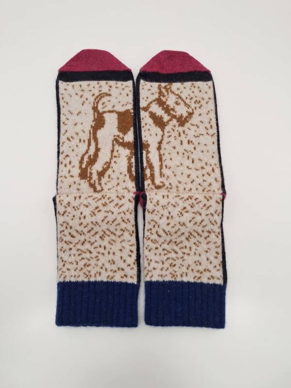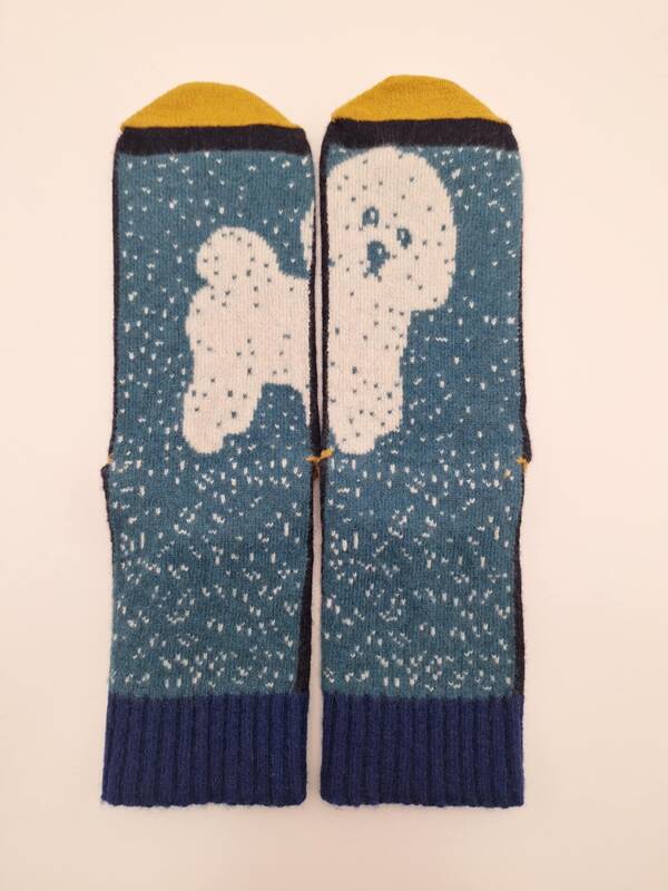 Bene daugiausia dėmesio sulaukė žaismingos ir įvairiaspalvės kojinės su šuniukais.