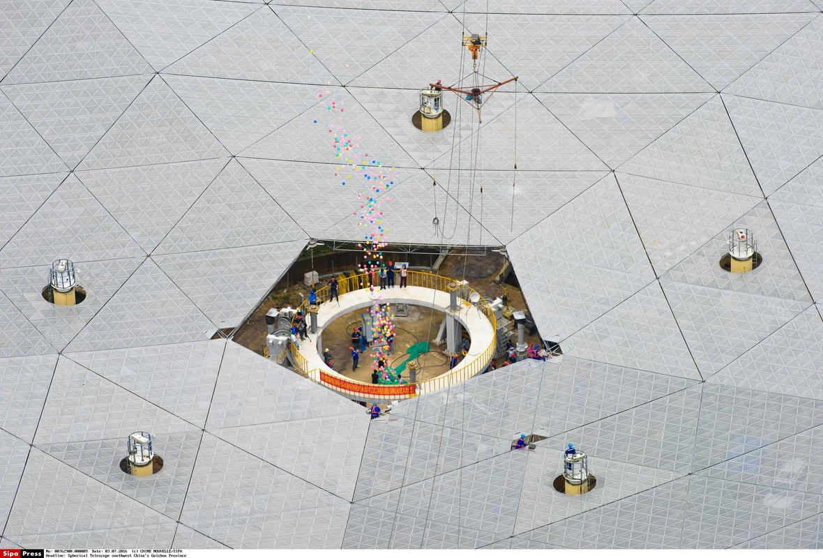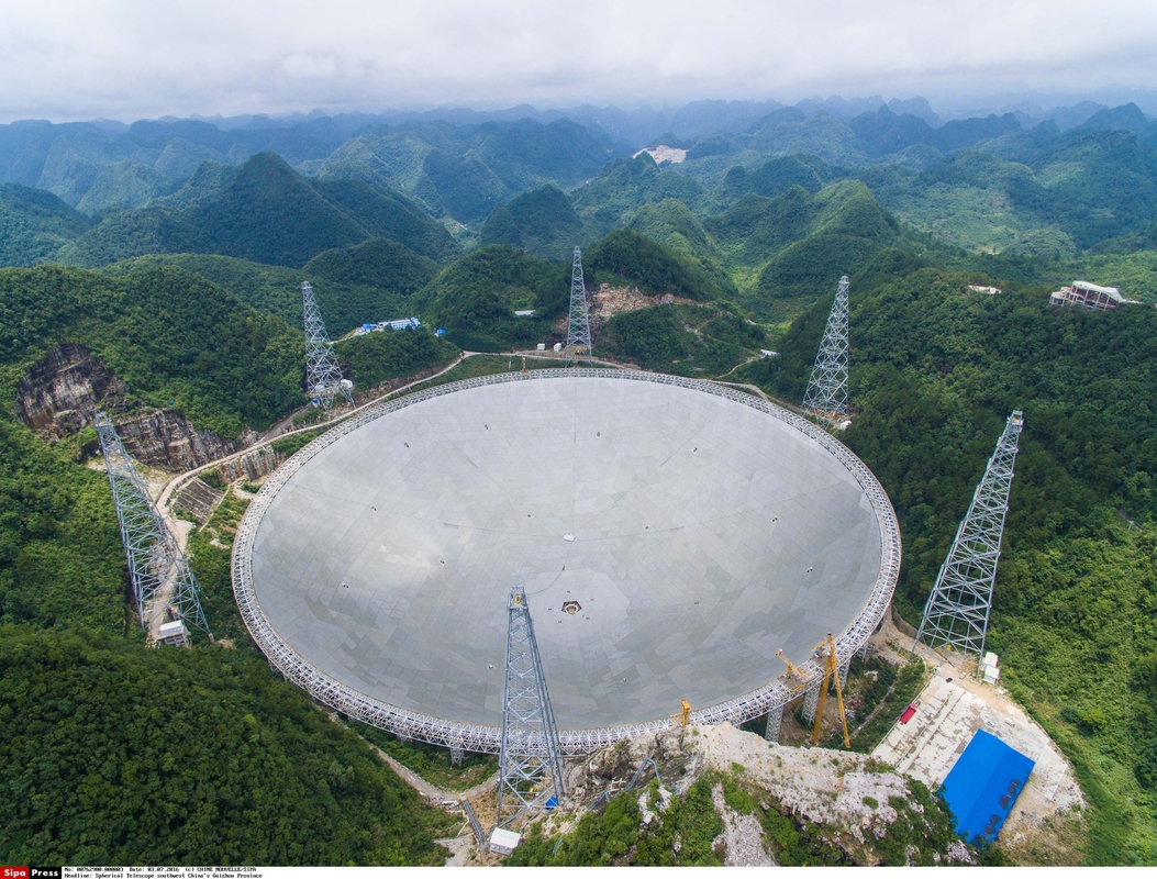 500 metrų skersmens apertūros sferinis teleskopas (FAST) yra 30 futbolo stadionų dydžio.