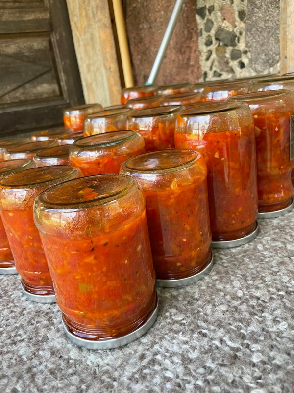 Jo kiekvienais metais ruošiu labai daug. Šiemet vienu metu pagaminau 30 indų nuo 0,5 l iki 1,2 l talpos. Jį galima ruošti iš labai įvairių daržovių, kokių tik turite. Šiemet į mano puodą pakliuvo svogūnai, morkos, paprikos, cukinijos ir pomidorai. Kam nepatinka, paprikų galima nedėti, o papildomai dėti moliūgų ar jais pakeisti cukinijas, dėti kitų daržovių, pavyzdžiui, baklažanų.