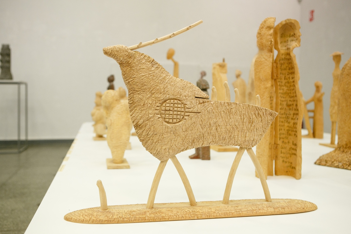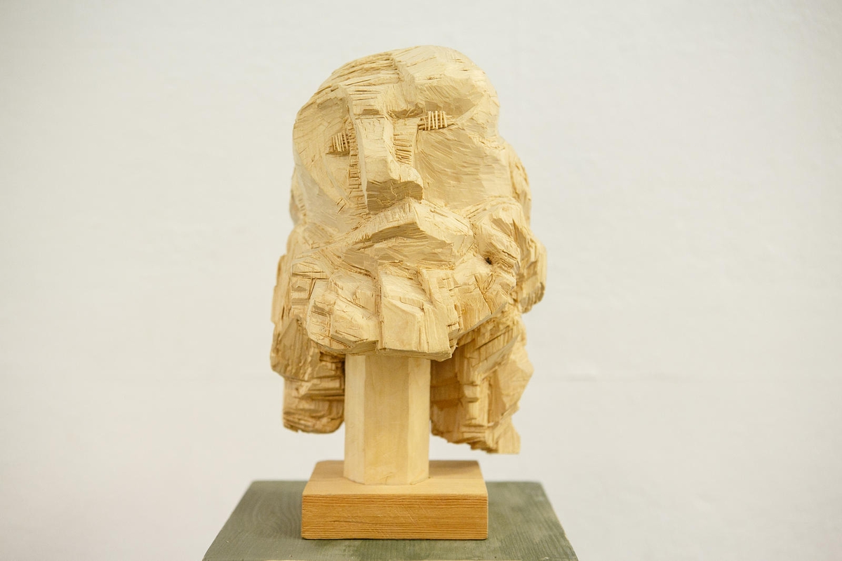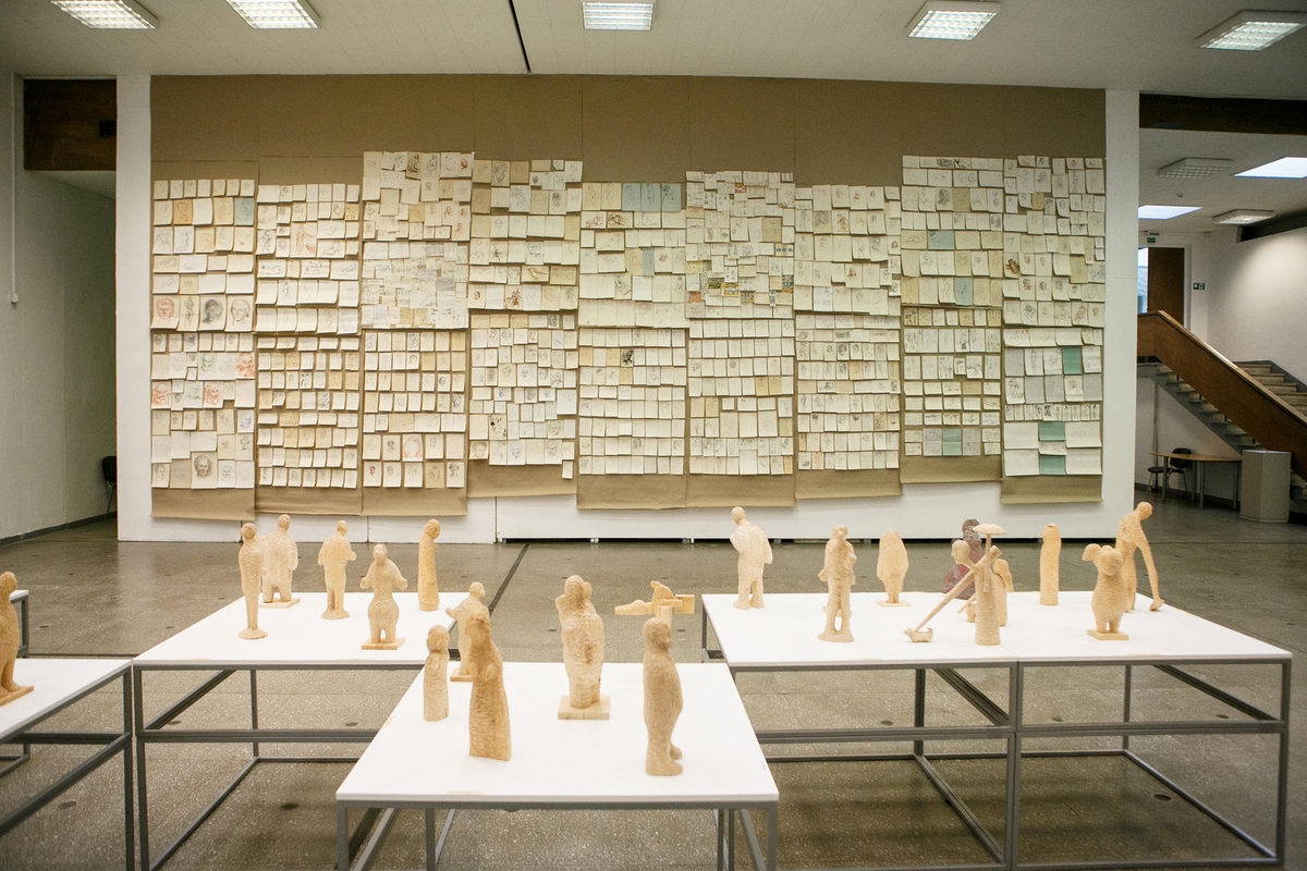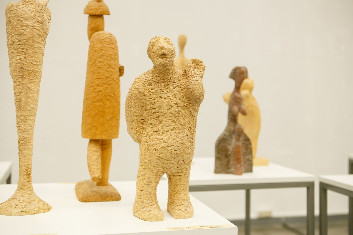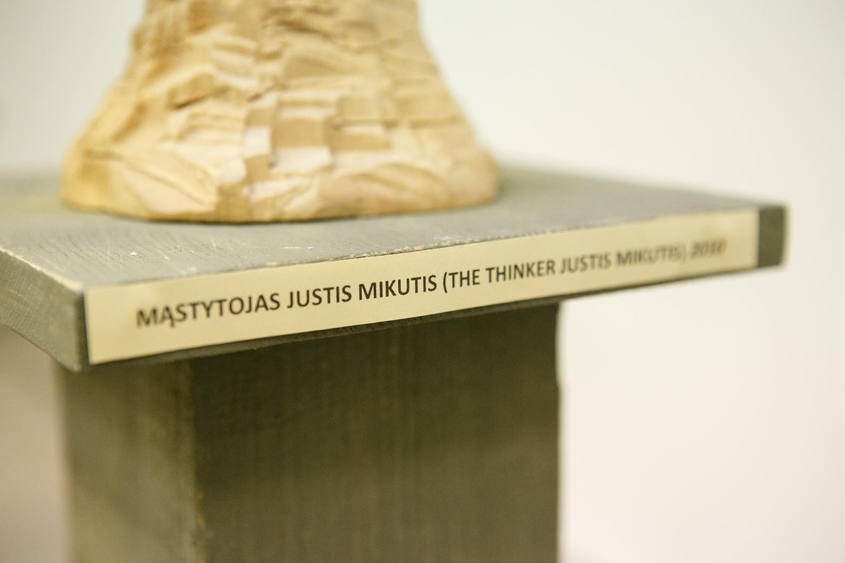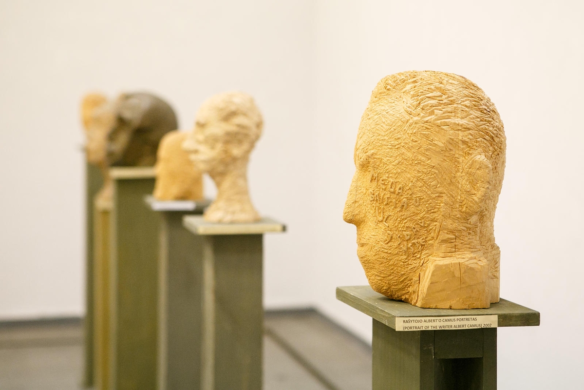 Kita L.Striogos parodos dalis marmurinėmis skulptūromis pasakoja Lietuvos meno istoriją. Didžiųjų mūsų kultūros kūrėjų portretai primena, kad esame grožio tauta ir tada, kai daugelio portretuose gyvų menininkų biografijos liudija kančią bei mirties dvelksmą. Aštrūs L.Striogos marmurinių darbų herojų veidų bruožai patvirtina, kad laikinas gyvenimas yra kupinas prasmės, suprantamos kaip darbo. Paveikslų galerijos salėje netikėtai susikalba medinėse skulptūrose užfiksuoti kaimo žmonės bei didieji menininkai – ir vieni, ir kiti žino, kad gyvenimas nėra lengvas pasivaikščiojimas. Be vienų nebūtų kitų. Filosofas Thomas Mertonas vieną iš savo knygų yra pavadinęs "Nė vienas žmogus nėra sala". Mąstytojas veikale kalbėjo apie religinį ir metafizinį ryšį tarp gyvų būtybių. L.Strioga skulptūromis atveria dar vieną, nemadingą bendrystės galimybę – tautiškumo saitus, kurie duoda mums galimybę nemirti vienatvėje pasaulio krašte.