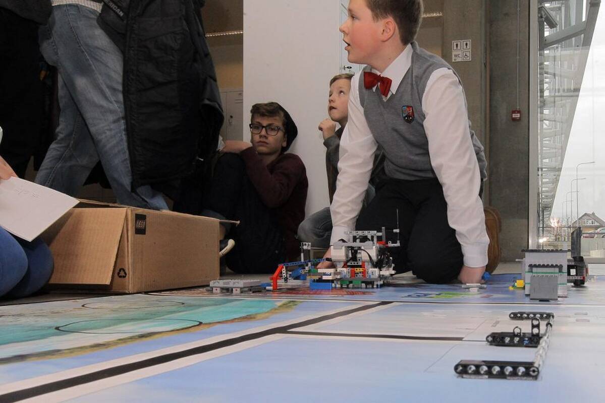 Viena užduočių – robotas turi paspausti mygtuką. „Mums šį kartą nepasisekė – robotas nepaspaudė mygtuko. Kodėl? Ne visai tiesiai paleidom robotą ir jis nukrypo iš kelio. Kol kas nežinom, ar išeisim į kitą etapą – bus dar du važiavimai, gal per juos atsigriebsim“, – vylėsi Lietuvos sveikatos mokslų universiteto (LSMU) gimnazijos penktokų komanda. Šioms varžyboms penktokai ruošėsi robotikos būrelyje.