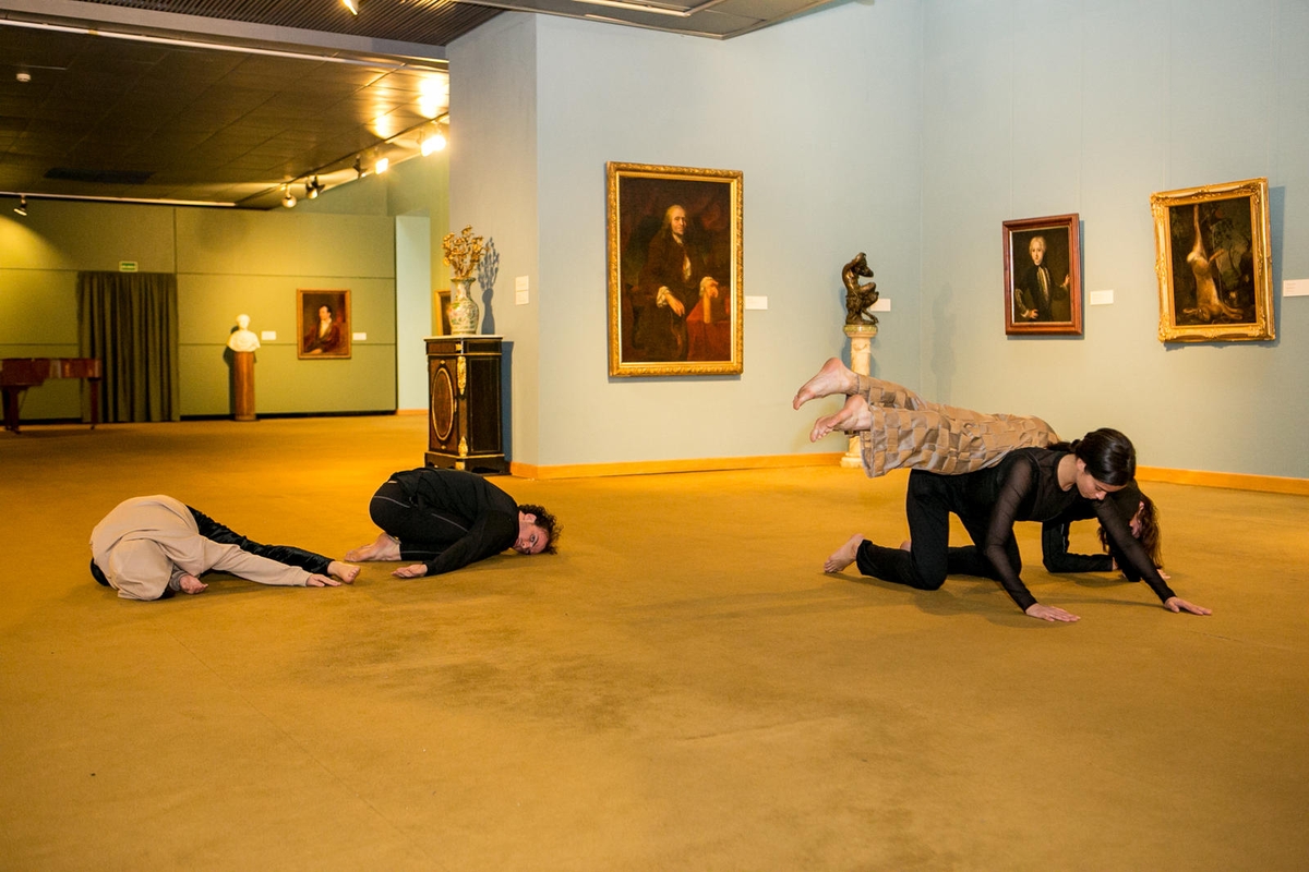 Performanso choreografės – Kaune gimusios, šiuo metu Briuselyje gyvenančios menininkės Lizos Baliasnajos teigimu, kūrinyje tyrinėjamas buvimas kartu erdvėje ir laike: kaip susikalba kūnai, norintys judėti drauge? Baigusi prestižinę šokio akademiją P.A.R.T.S. Belgijoje, L.Baliasnaja (L.B.) kartu su studijų bendražygiais atvyko į Kauną siekdama permąstyti santykį tarp kūno, judesio ir erdvės, naudojant choreografines strategijas. Šiuo tikslu galerijos erdvės bus transformuojamos, siekiant suteikti šokiui galimybę būti kažkuo kitu. Kauno menininkų namų organizuojamoje tarptautinėje premjeroje, be lietuvės, pasirodys dar trys gabūs šokėjai: šokio ir muzikos menininkas iš Londono Sidney Barnes (S.B.), iš Peru kilusi šiuolaikinio šokio meistrė Amanda Barrio Charmelo (A.B.Ch.) ir olandas Stefanas Govaartas (S.G.), kurio meninės praktikos ašis – poezija ir performatyvusis menas.