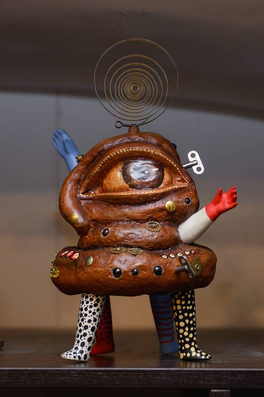 Spalvos: suteikdamas objektams naujų funkcijų, siedamas juos naujais ryšiais, L. Šutas kuria naujus mikropasaulius. Nuotraukoje – autorius prie „Altoriaus“. Ateivis. Lašas. Sveiki atvykę.