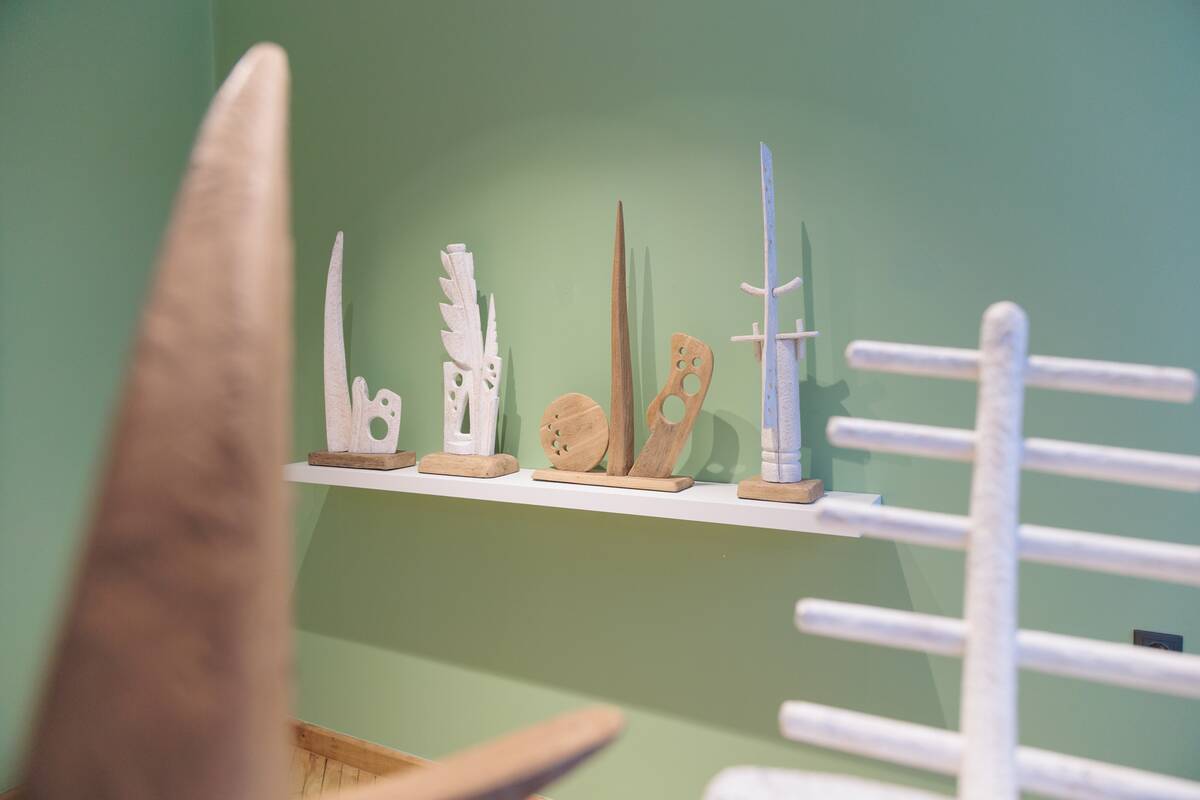 Parodos pavadinimas „Medžio ritmas“ taip pat priverčia susimąstyti, kad Kaune skulptorių, pasirinkusių medį kaip pagrindinę medžiagą kūrybai, kaip ir neturime. Anksčiau buvo Leonas Strioga, tačiau jo stilistika kitokia – švelniai romantiška, jautriai žmogiška. Dar – Liudvikas Ivaškevičius, parodų jau neberengiantis, bet taip pat medį matęs kitaip – jame dažniausiai įžvelgdavęs / atrasdavęs slypinčių angelų.