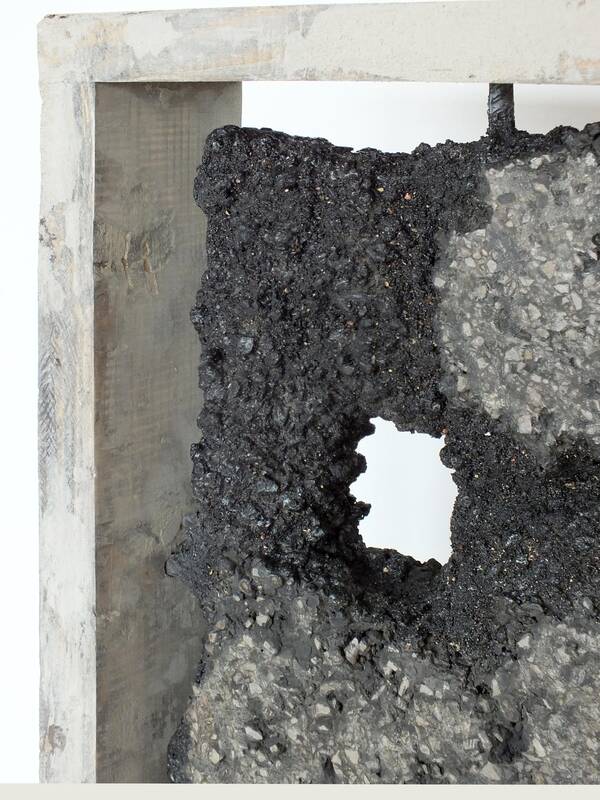 Statikai priešinama dinamika: užmūrytas ratas, į rodyklę, nurodančią judėjimo kryptį, įsirėžęs žmogaus pėdsakas. Abu vaizdinius asociatyviai jungia medžiagų (asfalto ir padangos) prigimtinis artumas, protektoriaus ir pado antspaudo asfalte faktūros, gatvės fragmentų vaizdavimas, mūro ir lieto asfalto urbanistinė simbolika. Narpliodamas abu vaizdinius siejančias asociacijas žiūrovas kuria savą matomų ženklų aiškinimą.
