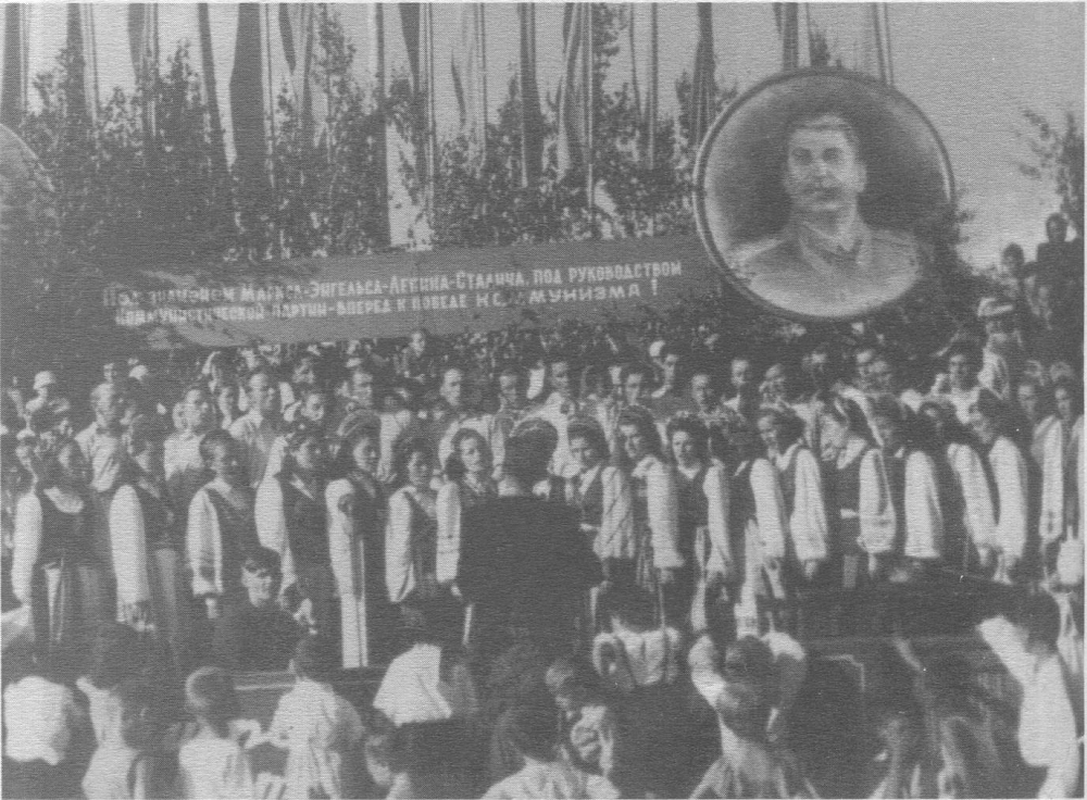Saviveiklininkai: Igarkos tremtinių jungtinis choras, kuriam diriguoja Bronius Dūda. (Nuotr. iš Aldonos Matulkaitės knygos „Igarkos tremtiniai“.)