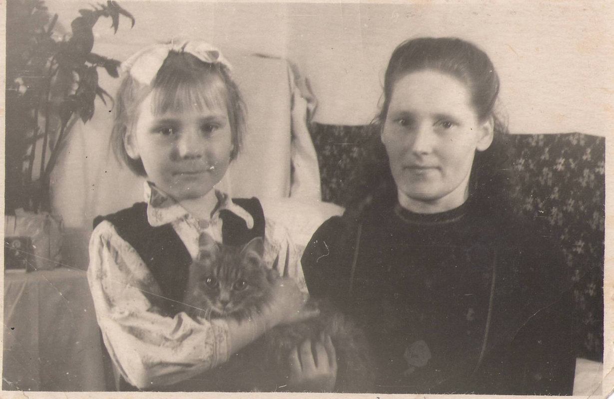 Igarkoje: Aldoną su katinu ir mama nufotografavo brolis Kazys. 1952 m./ A. Putnaitės archyvo nuotr.