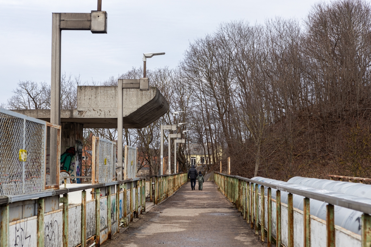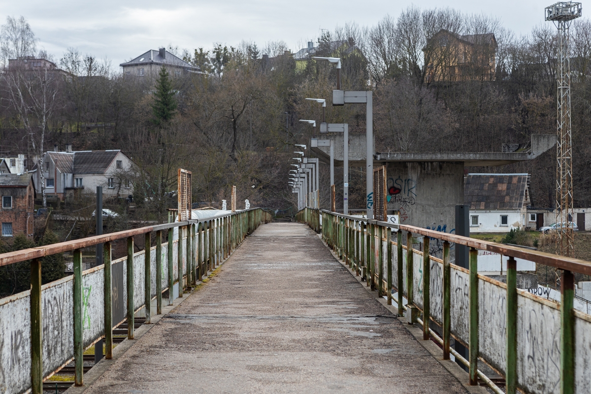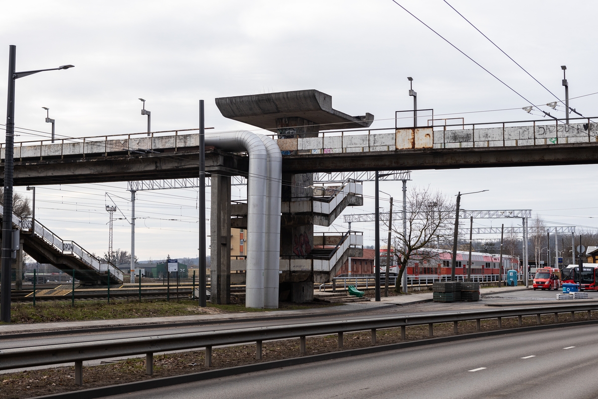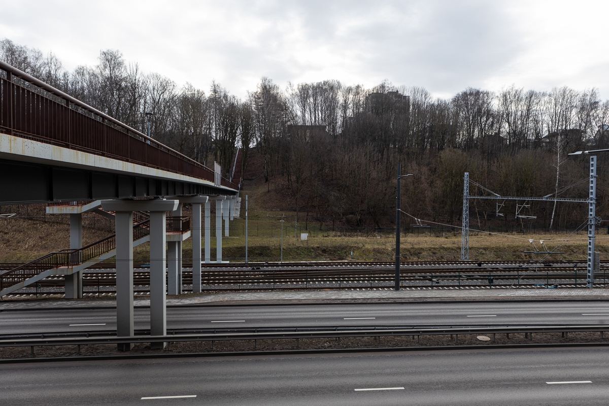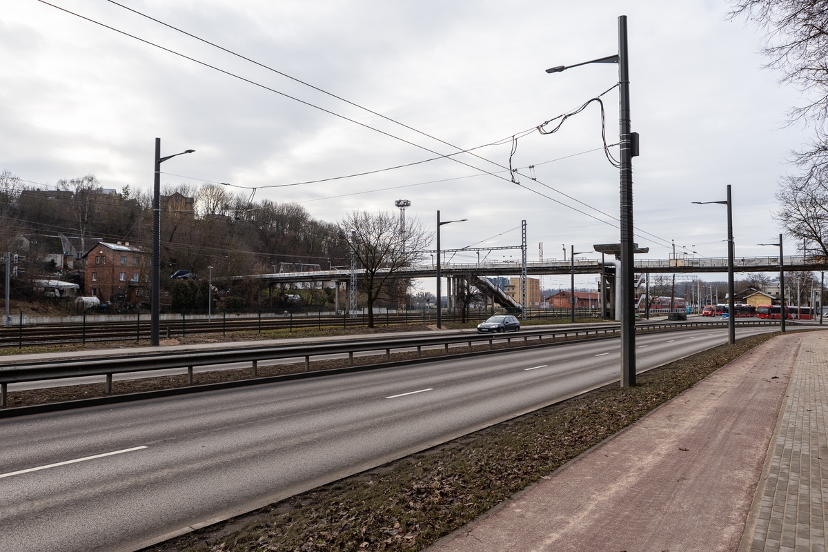 Vieta: idėjos autorius automobilių aikštelę Tunelio gatvėje numatė virš bėgių, tarp esamų pėsčiųjų tiltų. / Regimanto Zakšensko nuotr.