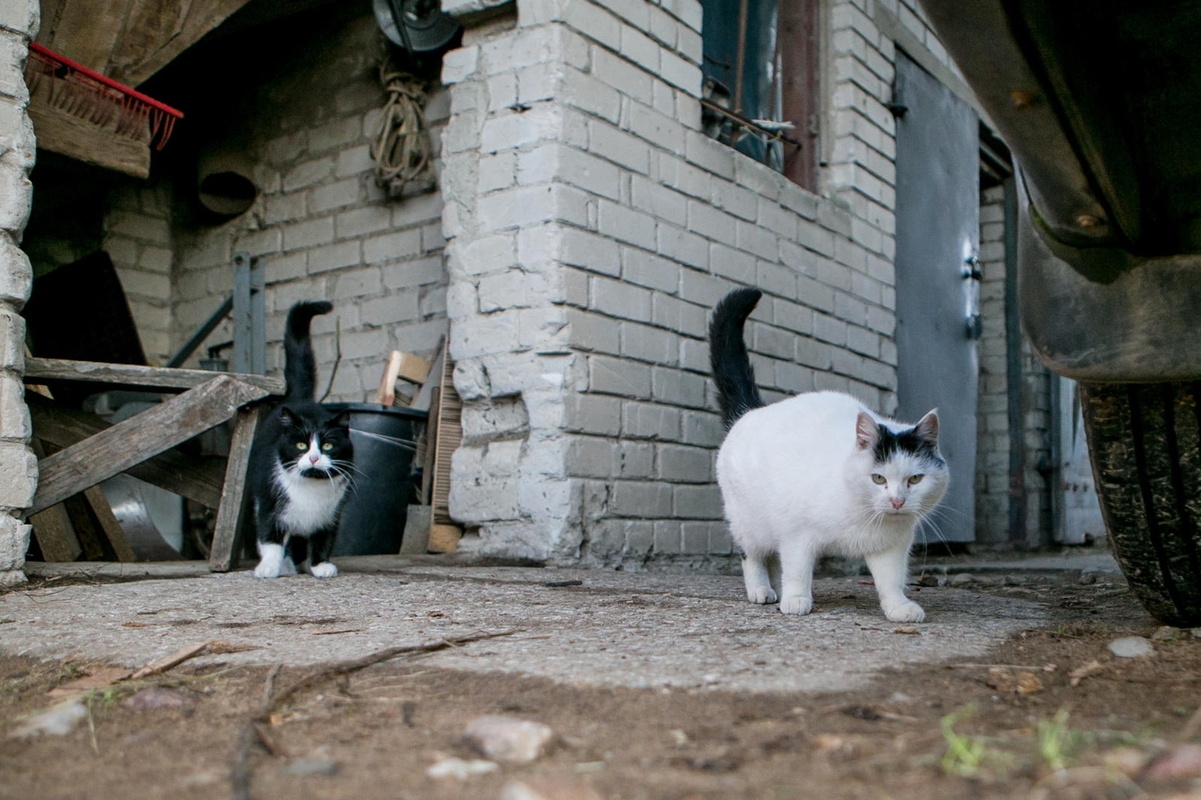 Kai užsukome į Astromskų ūkio kiemą, pirmasis išbėgo pasitikti Astromskų priglaustas šunelis Marlis ir dvi riebios katės. Pastarąsias čionai iš Trakų rajono atsivežė žiurkėms gaudyti. Pažvelgus į jas, atrodo, kad katės šią užduotį vykdo puikiai. Maža to, buvusios laukinukės dabar drąsiai eina net prie nepažįstamų žmonių.