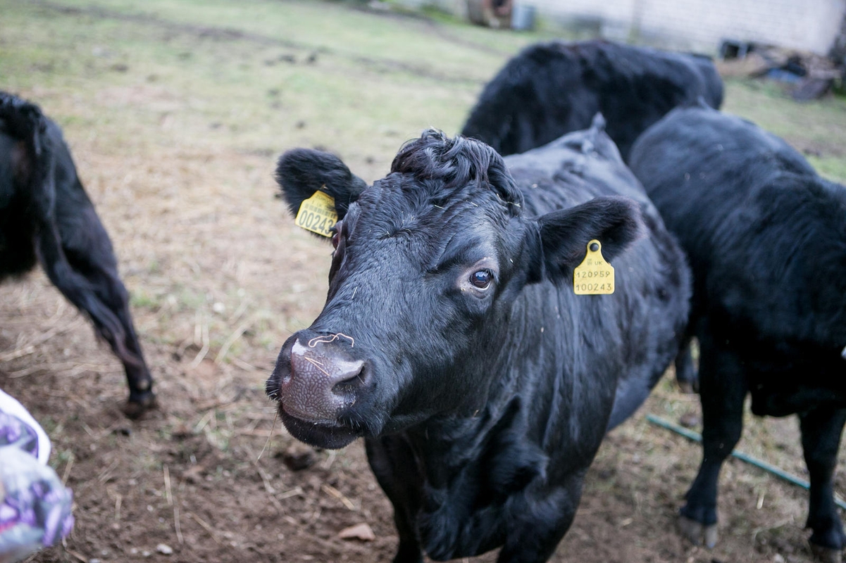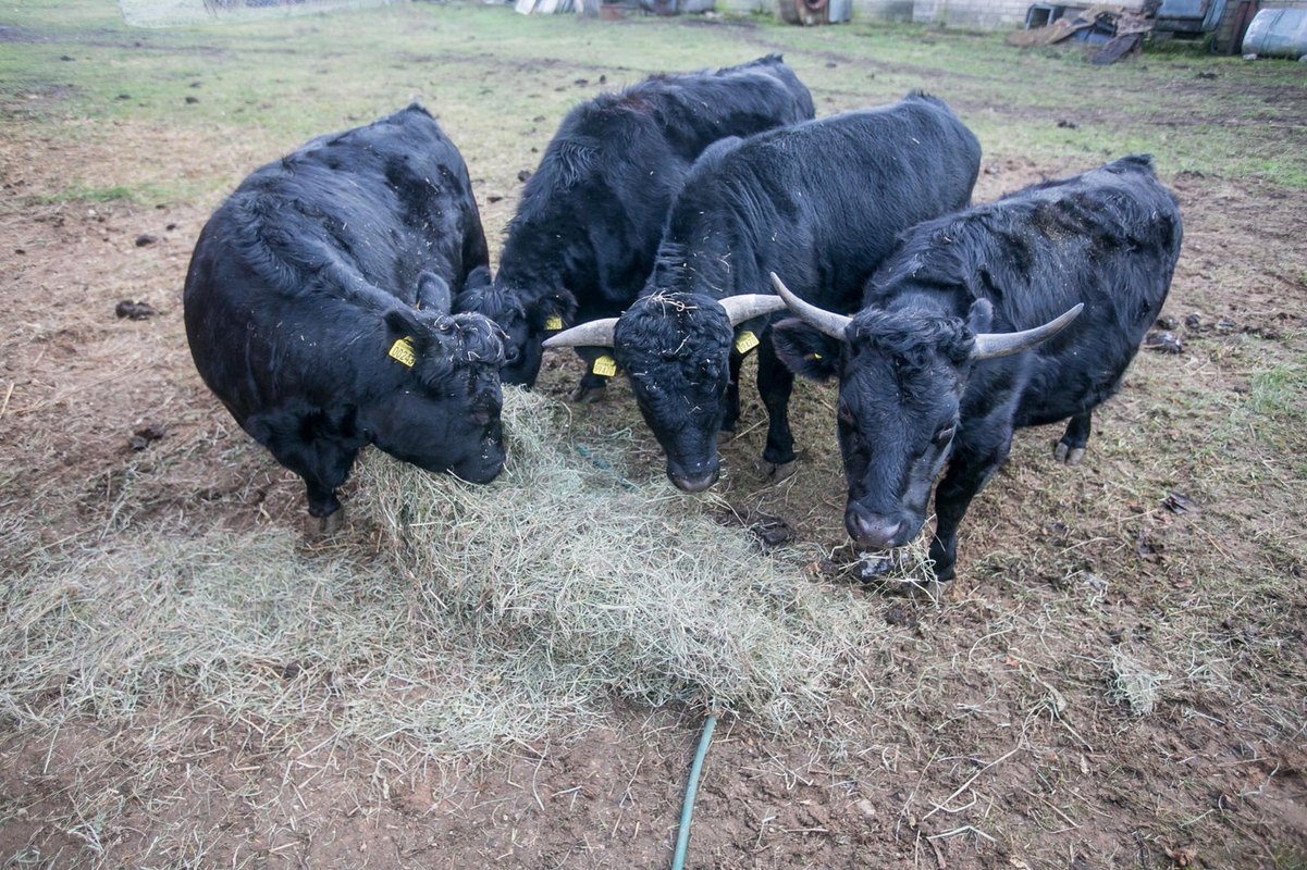 Netrukus aptvare pasirodė ir trys karvutės. Šeimininkė paaiškino, kad dvi be ragų mamytės yra gimusios Anglijoje, ketverius metus gyvenusios Estijoje ir prieš dvejus metus su savo dukromis atvykusios į Lietuvą. Viena jų šiomis dienomis laukia prieauglio.