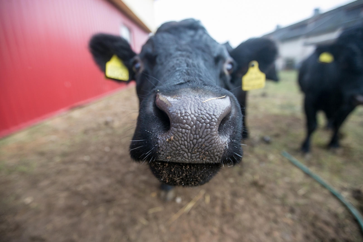 Kol šnekinome tas keturkojes medžiotojas, ūkio šeimininkė Adelė užsuko į tuščią lauko aptvarą šalia tvarto ir švelniai pašaukė "Bučki, Bučki!" Virš tvarto durų slenksčio netrukus pasirodė du tiesūs ragai, ant kurių pakibo tvarto durų angą dengusi šilta užuolaida. Tarsi teatre, ji kilo į viršų drauge su juoda, kiek garbanota, nediduko jauno buliuko Jodulio galva. Įtariai apžvelgęs nepažįstamus žmones, stovėjusius anapus lauko aptvaro, karingai nusiteikęs jautukas pasuko mūsų link. Supratau, kad bučinio tikrai nesulauksiu, kad teisi buvo jo šeimininkė, neleidusi mūsų aptvaran… Atsitokėjusi po pirmos buliuko atakos, pasidomėjau, kokia nauda iš tokio nedidelio, nors ir labai mielo mėsinio gyvuliuko.