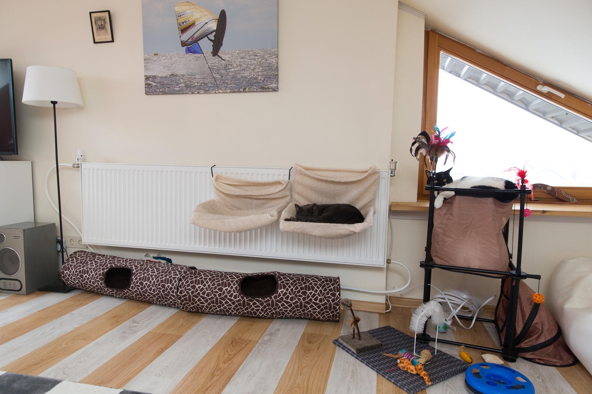 "Oi, kiek katinai sulaukė dėmesio", – šypsojosi olimpietis, kai, mums kalbantis, fotografas Elijus žaidė su gyvūnais.