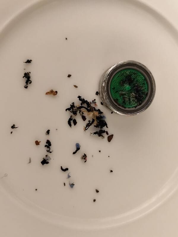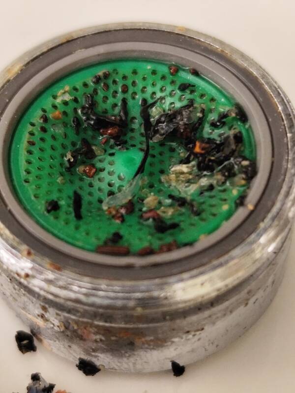 Tada buvo atsukti ir vandens vamzdžiuose esantys nedideli filtrai. Juose irgi rasta tokių pačių šiukšlių kaip skaitiklyje.