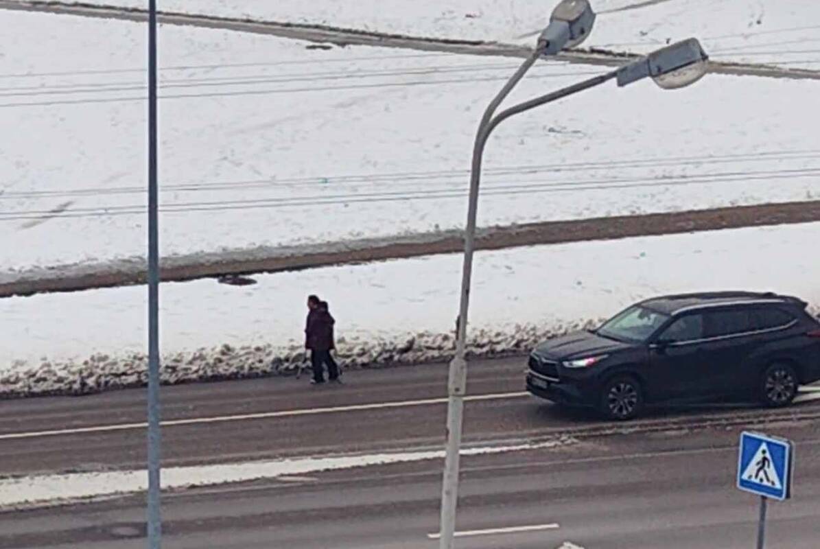 Šeštadienio rytą „Kauno dienos“ fotografas V. Krėvės prospekte užfiksavo itin retą ir įdomų vaizdelį. Viena kaunietė, į lauką išėjusi su ramentais, nutarė, kad jai saugiau bus eiti ne šaligatviu, o kelio, kuriuo važiuoja automobiliai, pakraščiu.