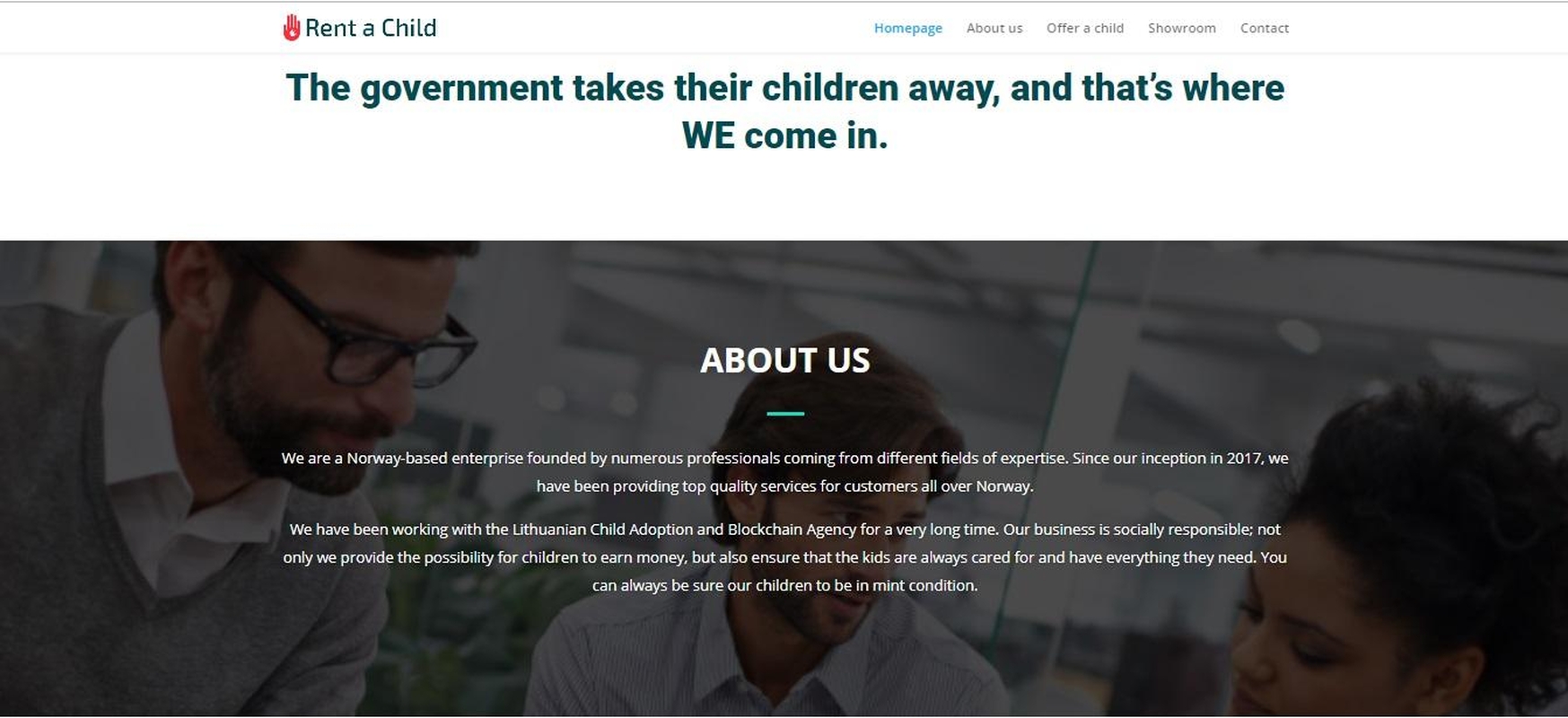 „Kauno dienos“ redakciją pasiekė informacija apie vieną internetinę svetainę, kurioje nurodoma, kad galima laikinai išsinuomoti vaiką bei patikrinti savo tėvystės įgūdžius. Skelbiama, kad per rent-a-child.com internetinę svetainę galima vaikus išsinuomoti ir fotosesijai, darbams ar asmenukei socialiniuose tinkluose.