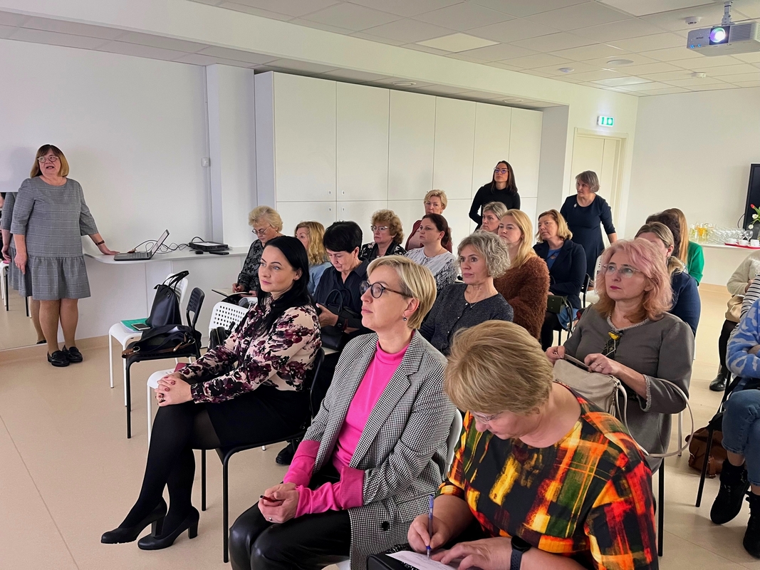 Inspektorė pristatė ikimokyklinių įstaigų patikrinimo rezultatus, patarė, kaip ištaisyti smulkius pastebėtus pažeidimus dėl higienos normų reikalavimų vykdymo, atsakė į gausius dalyvių klausimus.