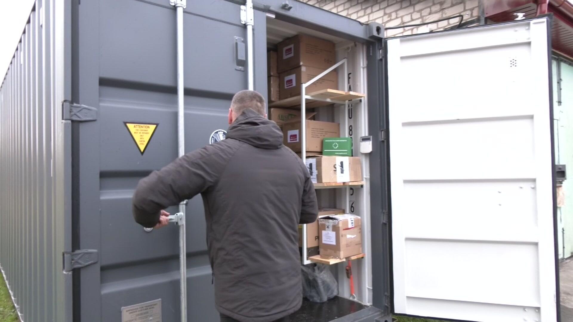 Iš išorės – įprastas jūrinis konteineris, tačiau viduje – šimtai priemonių, galinčių gelbėti gyvybes potvynio, gaisro ar net karo atveju.