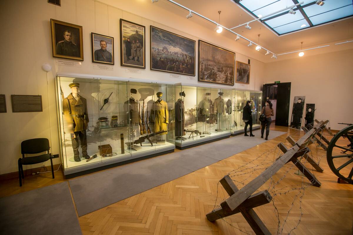 "Šiais metais Vytauto Didžiojo karo muziejus mini 100 metų jubiliejų. Jo istorija prasidėjo tuomet, kai, paskelbus Lietuvos Nepriklausomybės Aktą ir pradėjus kurti Lietuvos kariuomenę, kariuomenės vadovybė nusprendė Kaune įsteigti Karo muziejų. Nors darbai buvo pristabdyti, tačiau, juos atnaujinus, 1921 m. vasario 16 d. Vytauto Didžiojo karo muziejus buvo iškilmingai atidarytas. Muziejaus įkūrėjas generolas V.Nagevičius muziejų matė kaip kariuomenės ir visuomenės jungtį, kur pasakojama valstybės ir kariuomenės istorija, karybos raida, o, svarbiausia, įamžinamas aukų dėl laisvės atminimas", – priminusi muziejaus pradžią, L.Kasparaitė-Balaišė patarė sustoti salės priekyje, specialiu ženklu žymėtoje vietoje.