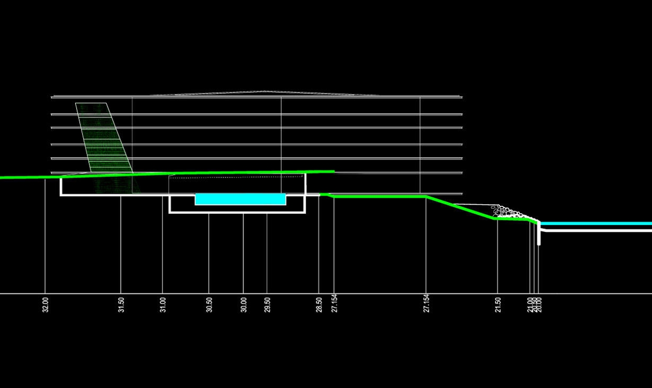 Pasak E. Miliūno studijos architekto Aurimo Ramanausko, baseinas bus integruotas į vakarinėje arenos pusėje esantį reljefą.