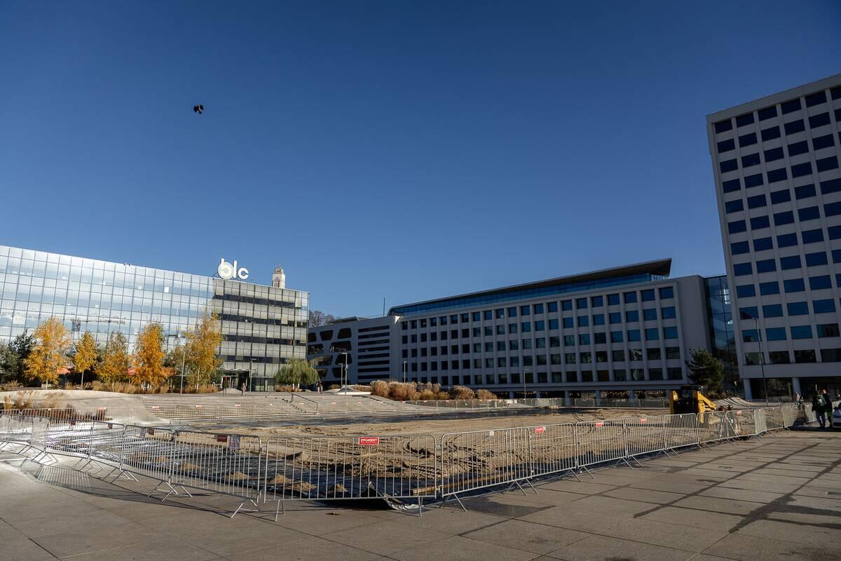 Neįprasti darbai savaitgalį vyko ir Kauno Vienybės aikštėje, kur planuojama įrengti čiuožyklą.