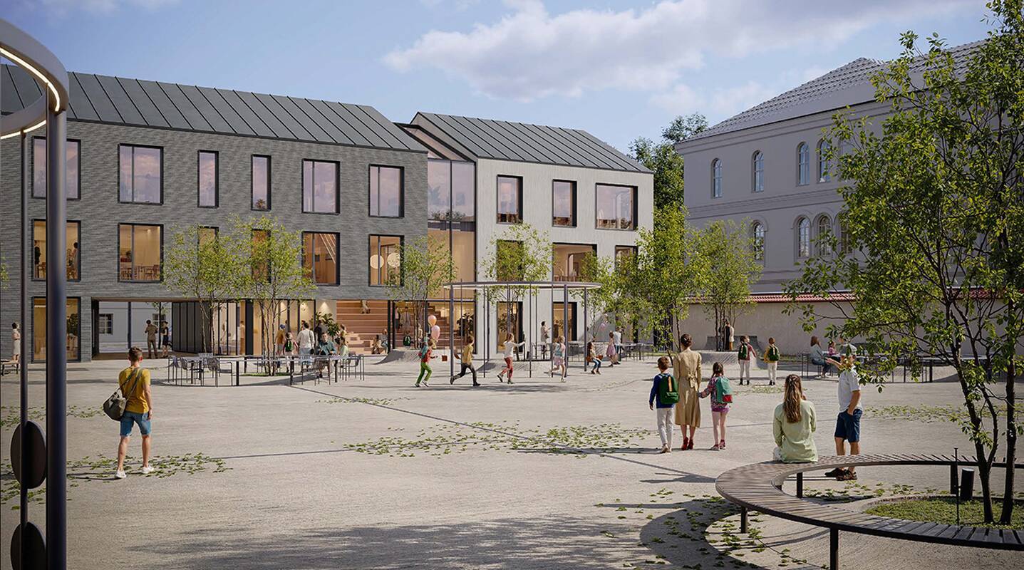 Projektas taip pat kuriamas kaip pridėtinė vertė miestui: rytinėje dalyje planuojamas naujas Maironio gimnazijos korpusas. Jame numatoma įrengti klases, bendravimo erdves, mokytojų kabinetus ir auditoriją, atsiveriančią į aikštės pusę. Šiaurinėje dalyje – administracinis pastatas su bendruomenės centru ir restoranų ar kavinių erdvėmis. Aikštę atribojus nuo intensyvių gatvių ir pirmą aukštą pripildžius miestietiškomis funkcijomis ji taps patraukli įvairioms veikloms, skirtingoms amžiaus grupėms.