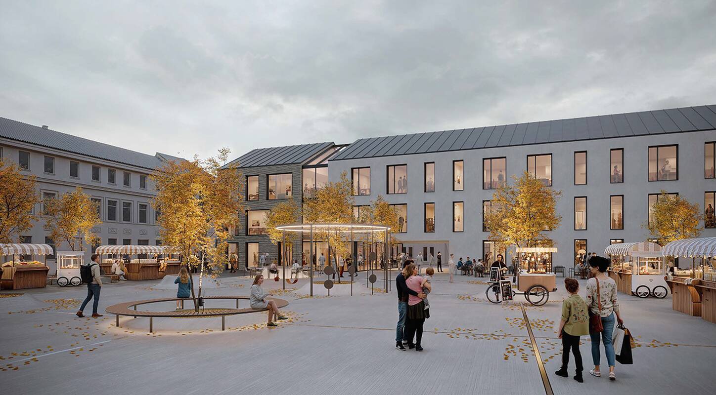 Pasak jų, L formos pastatai palei Šv. Gertrūdos ir Gimnazijos gatves suteikia aikštei aiškią formą, o rytinė bei vakarinė aikštės dalys lieka atviros ir lengvai pasiekiamos miestiečiams. Nauji pastatai dera su Senamiesčio masteliu, tūriu ir fasadų proporcijomis, šlaitiniai stogai bei medžiagiškumas sujungia tradiciją su moderniais sprendimai.