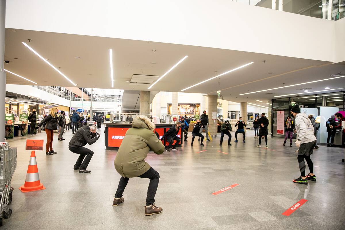 Kol kas sporto klubai dar uždaryti, sportuoti galima po vieną nebent lauke, tačiau dabartinis šaltukas apriboja galimybes fiziškai pajudėti. Todėl sporto entuziastai surengė netikėtą treniruotę prekybos centre „Akropolis“.