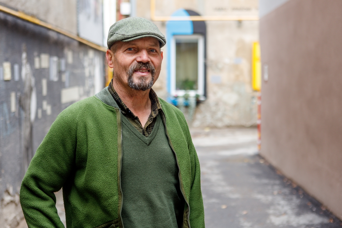 „Nuo pat pradžių norėjau pasakoti šio kiemo istoriją. Namui, kuriame gyvenu, – jau 130 metų, o Kiemo galerijai – dešimt“, – persisvėręs per trečiojo aukšto balkono turėklus, mus sveikino menininkas, kiemo senbuvis Vytenis Jakas.