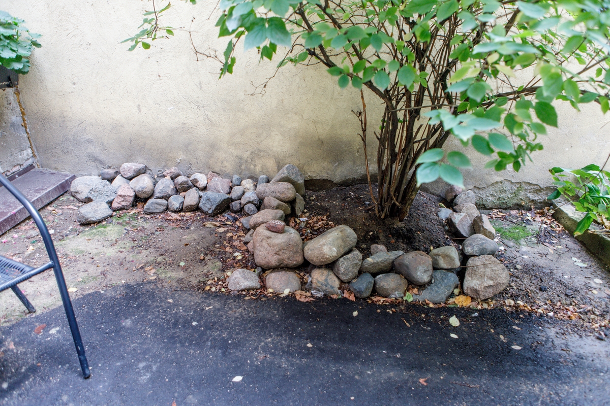 Prašymas: dalis akmenų jau panaudota kiemo grindiniui, tačiau riedulių reikia dar daugiau. / Justinos Lasauskaitės nuotr.