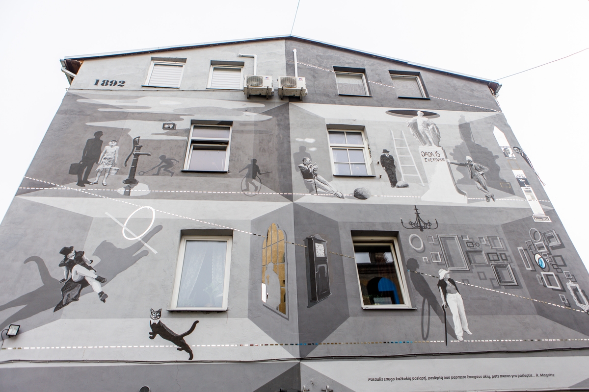 Trumpai šnektelėjęs su keliais kaimynais, menininkas stabtelėjo prie paslapčių sienos, pasakojančios skirtingas čia gyvenusių ar tebegyvenančių žmonių istorijas. Vienos jų džiaugsmingos, kai kurios – apie liūdnus dalykus.
