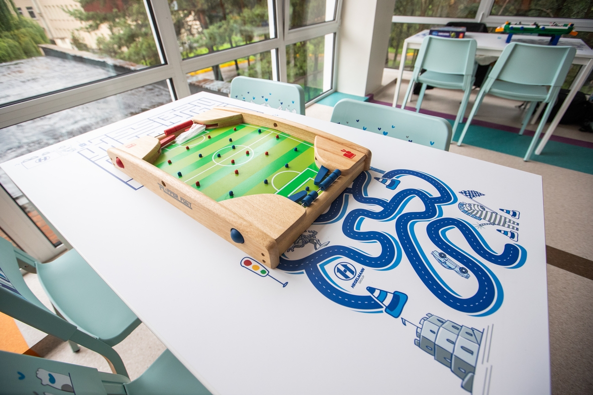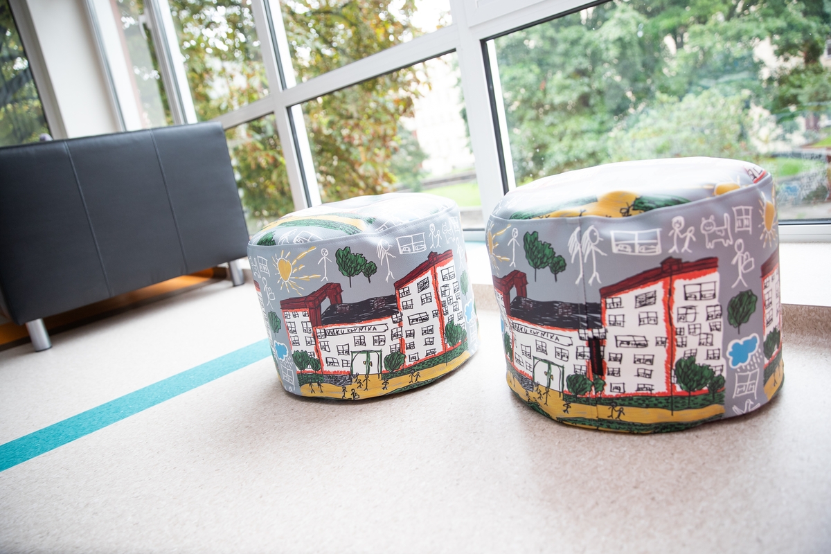 Vaikų žaidimų erdvei patogumo suteiks baldai knygoms ir žaislams, nauji stalai su kėdėmis, pritaikyti net ir mažiausiems, prie kurių vaikai galės skaityti, piešti ar žaisti, jaukumą kurs sienų piešiniai, tapyti menininkės „Garbanotos“ ir įrengtos poilsio zonos su sofomis bei minkštais sėdmaišiais, kuriuos Kauno klinikoms padovanojo tarptautinė transporto ir logistikos bendrovė „Hegelmann Transporte“. Ant vieno iš sėdmaišių taip pat perkeltas piešinys – jį profesoriui Vidmantui Barauskui atsidėkodama nupiešė viena pacientė, kurią jis operavo Kauno klinikose. Šis piešinys primena, koks svarbus gydytojų ir mažųjų pacientų ryšys.