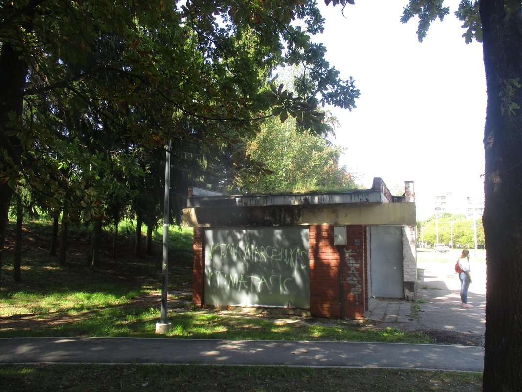 Šiandien apsilankiau prie „Draugystės parko“ stotelės. Troleibusų ir autobusų laukiantiems keleiviams yra įrengtas paviljonas, todėl už kelių metrų riogsantis vaiduoklis su išlaužytu suoleliu, stiklo šukėmis, šiukšlėmis ir aprašinėtomis sienomis nereikalingas.