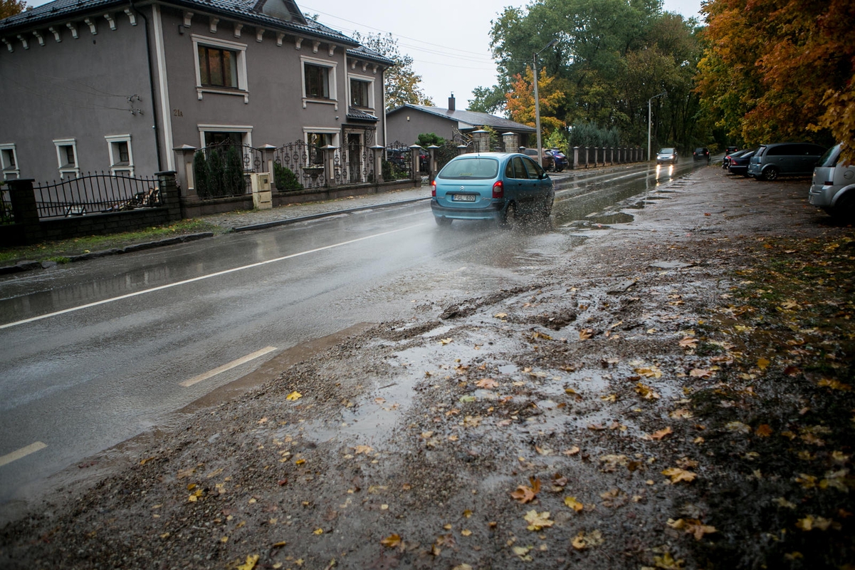 Pasak vietinių, dėl stipria čiurkšle judrioje gatvėje tekančio vandens, ši greitu metu gali tapti nepravažiuojama. Gyventojai tvirtina, jog trečiadienį ruože, ties minėtu namu stabtelėjęs automobilis kone prasmego.