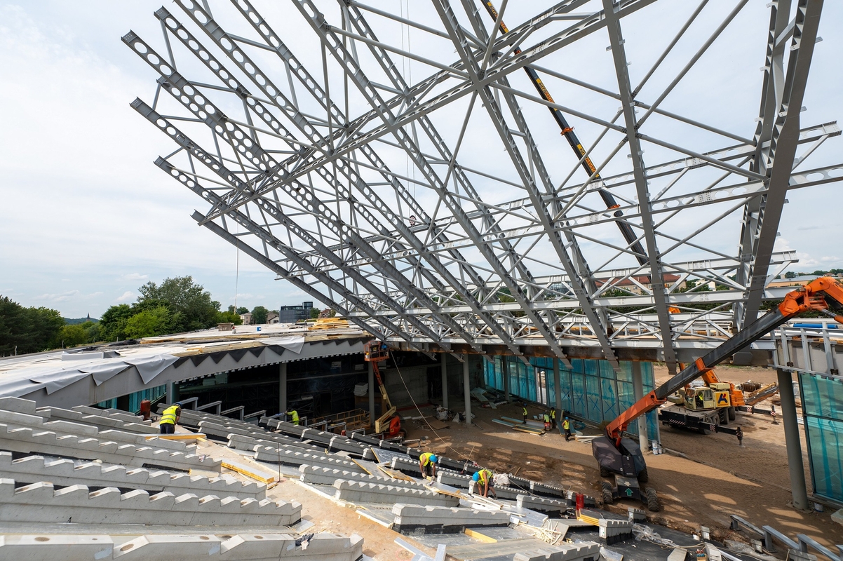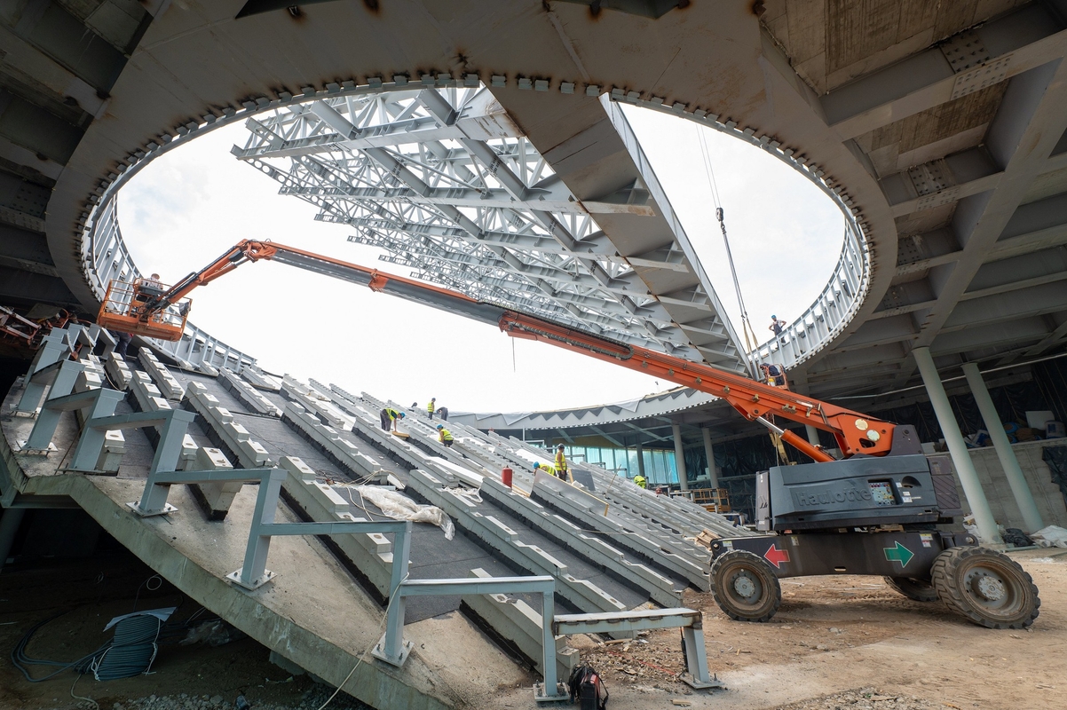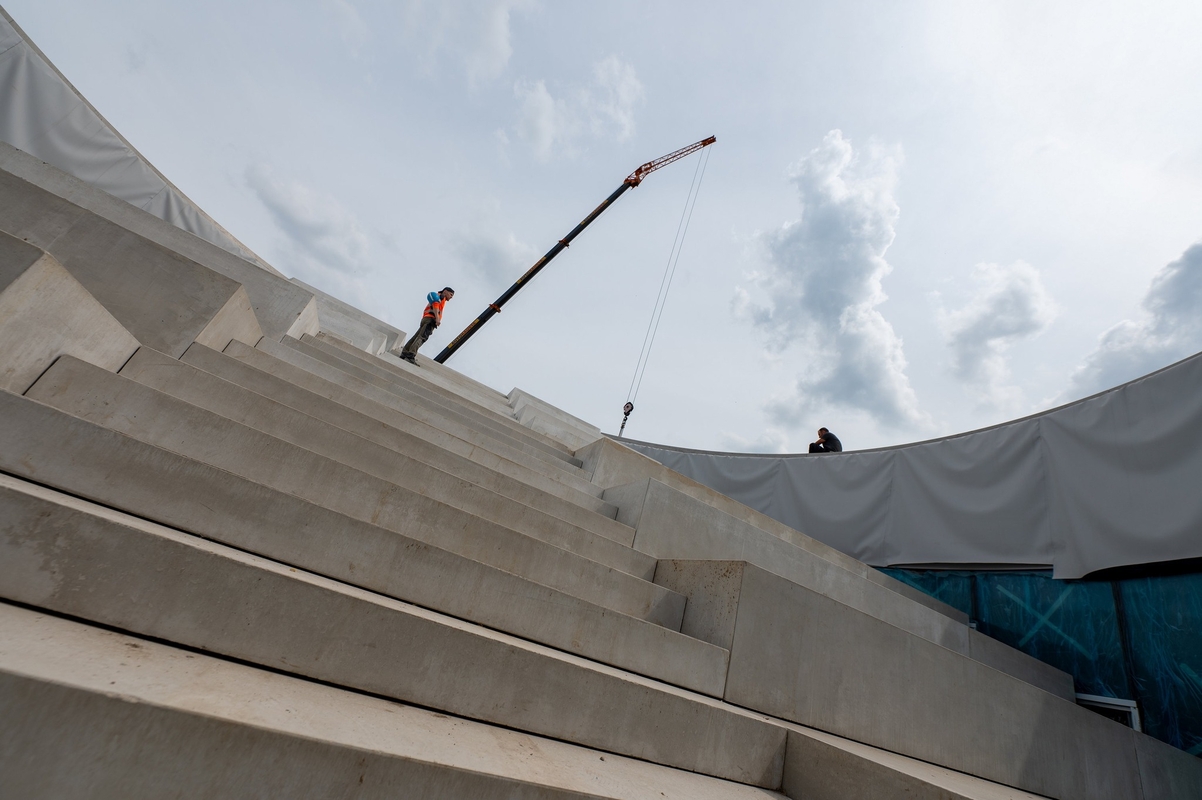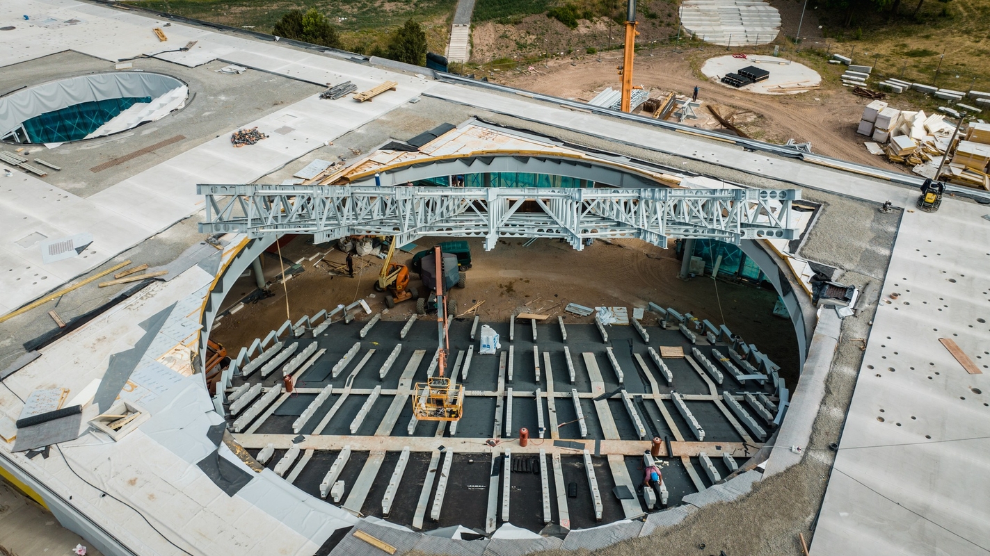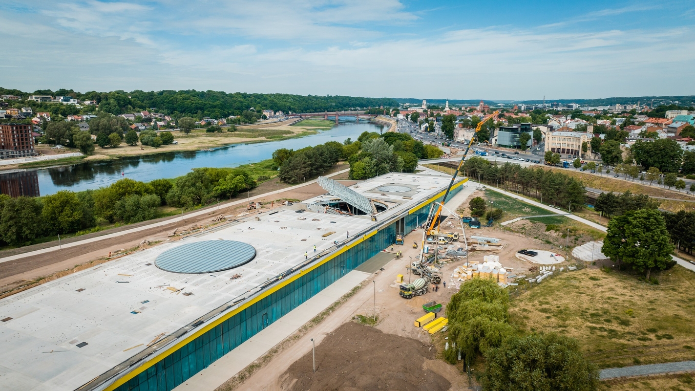„Darbai įsibėgėja ir ties pagrindiniu įėjimu, kuriuo lankytojai pateks į vidų per pastato stogą. Jo akcentas – 21 metro skersmens tarsi ore pakibęs diskas, jau tapęs „Mokslo salos“ simboliu“, – pridūrė specialistai.