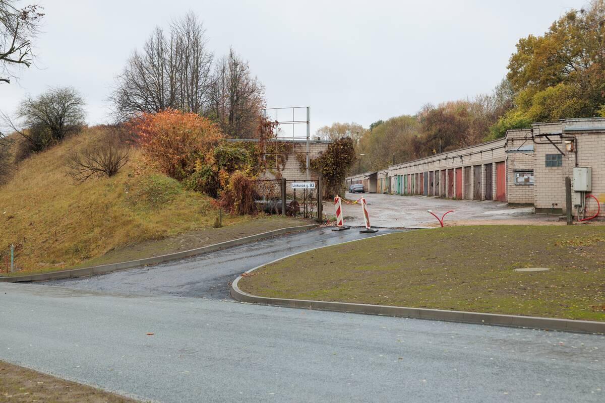Besileidžiant kalnu dėmesį patraukė įvažiavimas į garažus. Jis viso remonto metu buvo užblokuotas. Keista, nes prie garažų buvo matyti stovintys keli automobiliai. Negi jų savininkams per kelis mėnesius šių transporto priemonių taip ir neprireikė? Jeigu ir prireikė – šaukštai po pietų. Bet laukti teks jau nebeilgai.