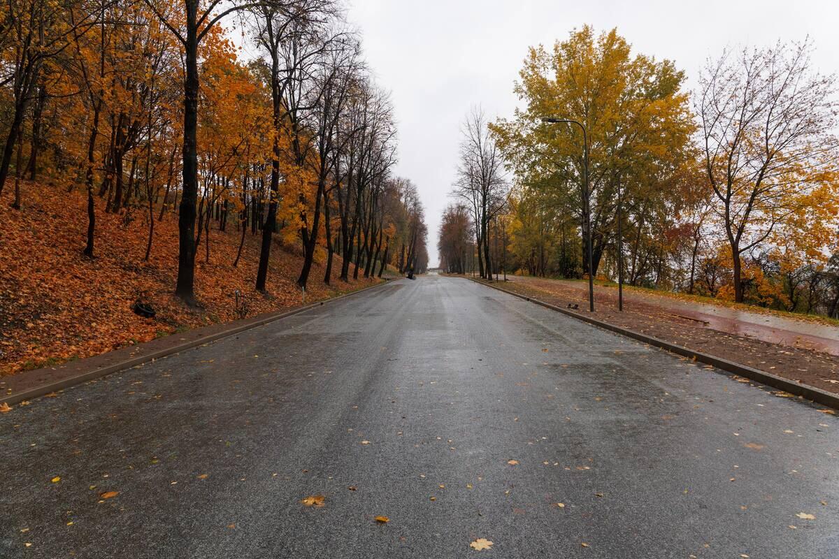 Nauja asfalto danga dengia jau visą įkalnę. Belieka baigti nutiesti takus pėstiesiems ir dviratininkams. Iš apačios ir iš viršaus šie takai jau sukloti, tačiau maždaug pusiaukelėje dar žiojėja smėlio ruožai.