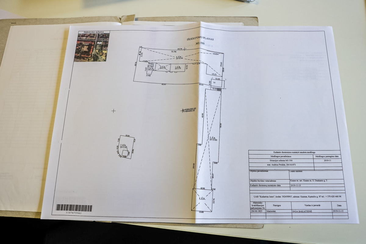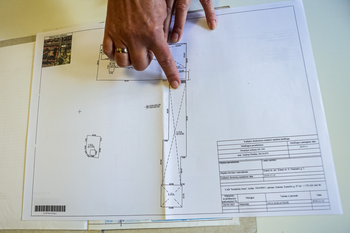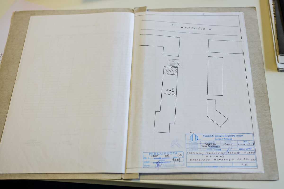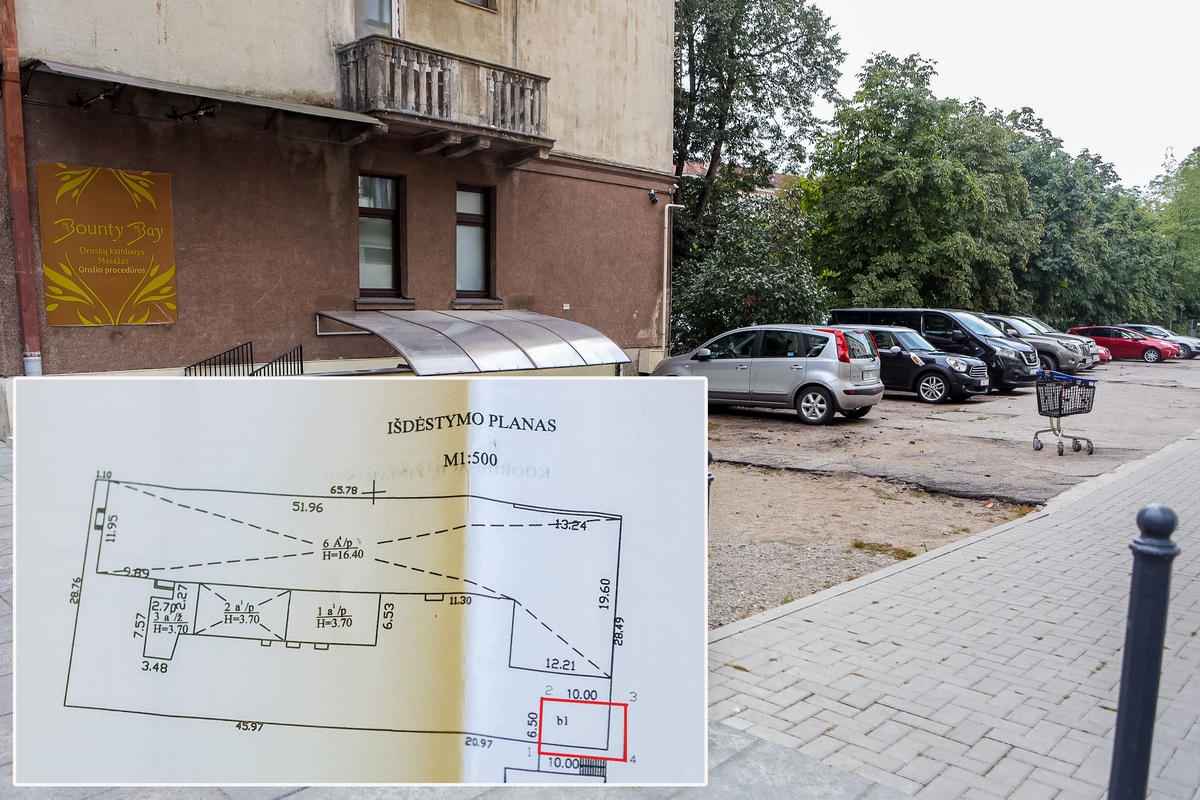 Kauniečio pateikti Registrų centro išrašai liudija jį esant 65 kv. m lauko aikštelės savininku. Vyras turi ir dar senesnę 2004 m. Registrų centro bylą, kurioje taip pat nubraižytas planelis prie namo, kuriame dabar yra grožio salonas, patvirtina esant lauko aikštelę.