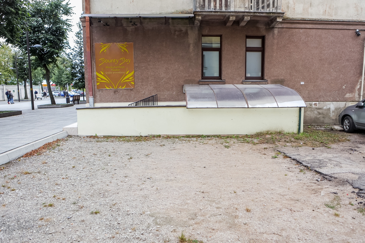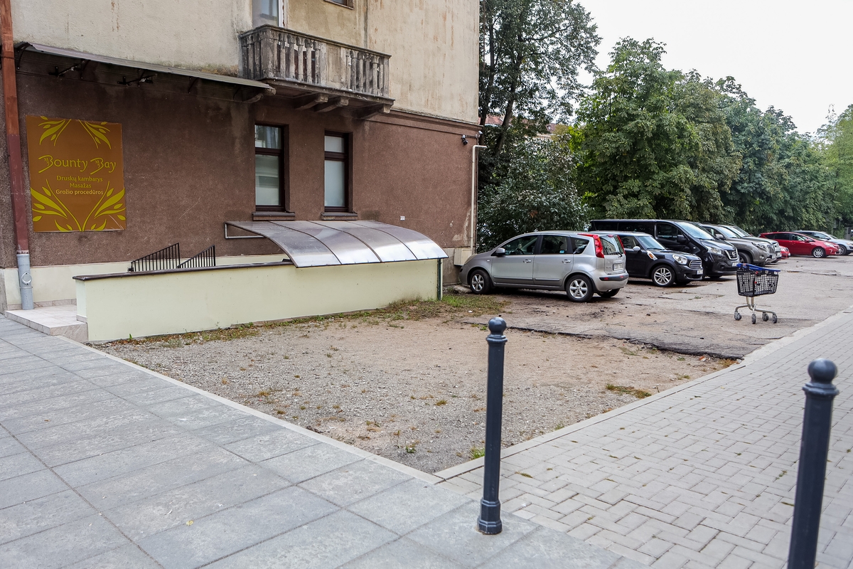 Ieškinys: G.Velavičius aiškina 2012 m. nusipirkęs patalpas kartu su lauko aikštele, tačiau naudotis ja negali bene dvejus metus ir tikisi servituto teisės. (Justinos Lasauskaitės nuotr.)