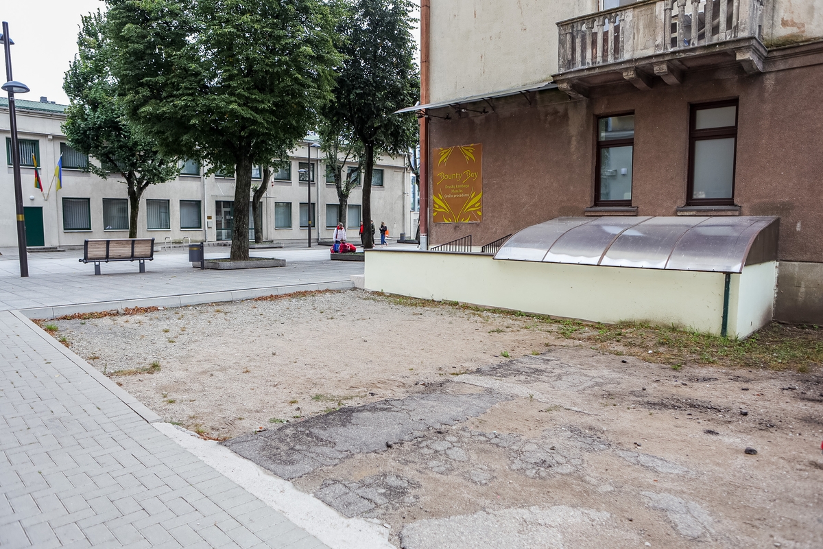 Per gatvės rekonstrukciją nuardžius klombą liko žemės, tai darbininkų paprašiau, kad bent skaldos užpiltų.