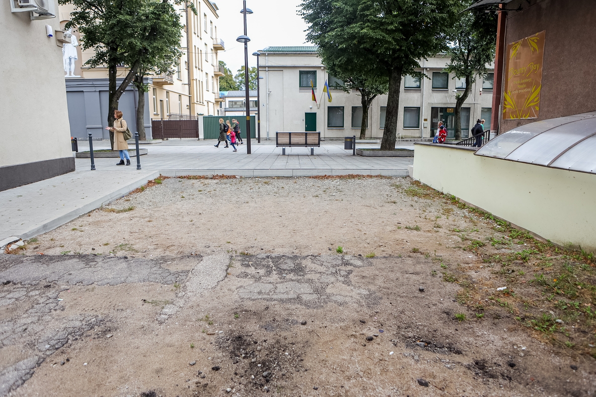 Tačiau G.Velavičius baksnoja į dalyje aikštelės išlikusią asfalto dangą – maždaug 9 kv. m, kurios patikrinimo metu nematė NŽT specialistai. „Kadangi šioje vietoje, kur dabar yra skalda, buvo klomba, o per gatvės rekonstrukciją, ją nuardžius, liko žemės, darbininkų paprašiau, kad bent skaldos užpiltų, jie tai ir padarė. Kitoje dalyje aikštelės liko asfalto danga“, – aiškina G.Velavičius.