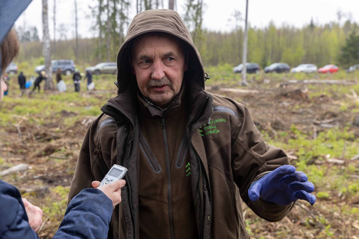 „Ryte dar šlapdribos buvo, galvojau, kas bus liūdna, bet žmonių vis tiek prisirinko, – sakė Karmėlavos girininkas Kęstutis Bacvinka. – Čia, kur esame, yra kirtavietė. Kur iškirsta, mes atsodinam. Galima mišką atkurti keliais būdais. Šioje vietoje buvo jau subrendęs miškas, kuris jau nesurinko dvideginio, o jį pūdamas atidavė atgal. Daugiausiai deguonies kuria jaunas miškas. Augavietėje tada atsodinami medžiai, čia galima vienu metu tai padaryti ir sukurti atsparesnį ligoms mišką“.