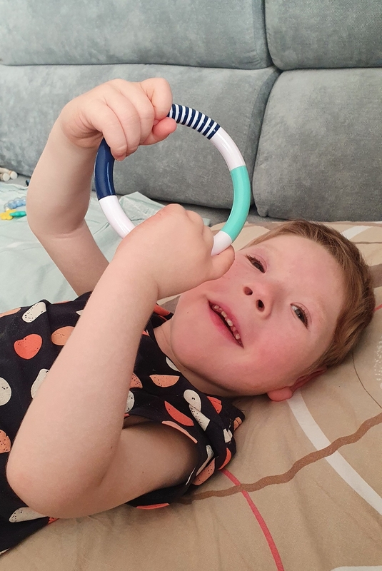 „Galima sakyti, kad nuo tada – jau pusantrų metų Tauras nebesivysto: pats neapsiverčia, nesėdi, nestovi, nevaikšto, nekalba, nekramto maisto. Dabartinė jo raida atitinka ne trejų metų vaiko, o keturių mėnesių kūdikio. Periodiškai kelis kartus per savaitę sūnus lanko kineziterapeuto, ergoterapeuto užsiėmimus. Tačiau tai yra sudėtinga. Būna dienų, kai jam lyg iš niekur nieko pradeda skaudėti pilvą, atrodytų, užeina stiprūs spazmai ir Tauras pravirksta. Tada specialistai negali su juo dirbti. Todėl mes nuolat ieškome pusiausvyros tarp to, ką teoriškai galėtume daryti, ir to, ką mes galime daryti praktiškai“, – atviravo pašnekovė.