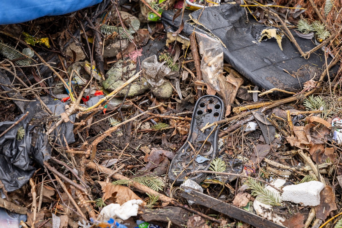 Iš tiesų naująjį piešinį apsupęs šiukšlynas, kuriame gausu įvairių atliekų. Čia žmonės sumetę ir nebenaudojamų drabužių, avalynės, mėtosi tušti buteliai, net ir ardyti pradėtas senas televizorius. Pasibaigus šventėms į šį nelegalų sąvartyną keliauja Kalėdų eglutės, žaislai, dėžės. Šiukšlė traukia kitas šiukšles.