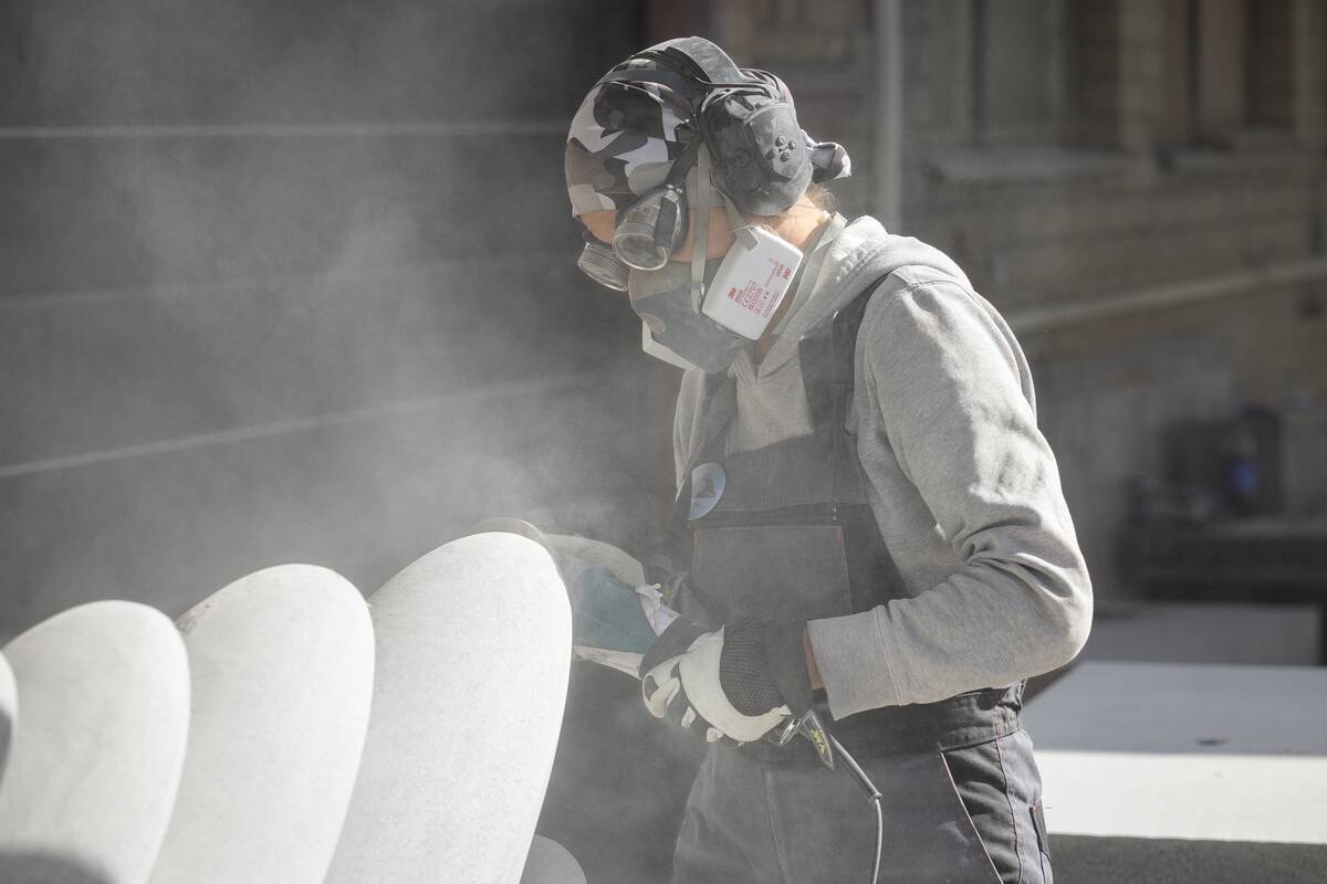 Menininkės teigimu, sunkiausias etapas – granito pjaustymas. Šį etapą ji jau įveikė. Liko baigiamieji darbai, kurie užima daug laiko ir yra mažiausiai matomi.