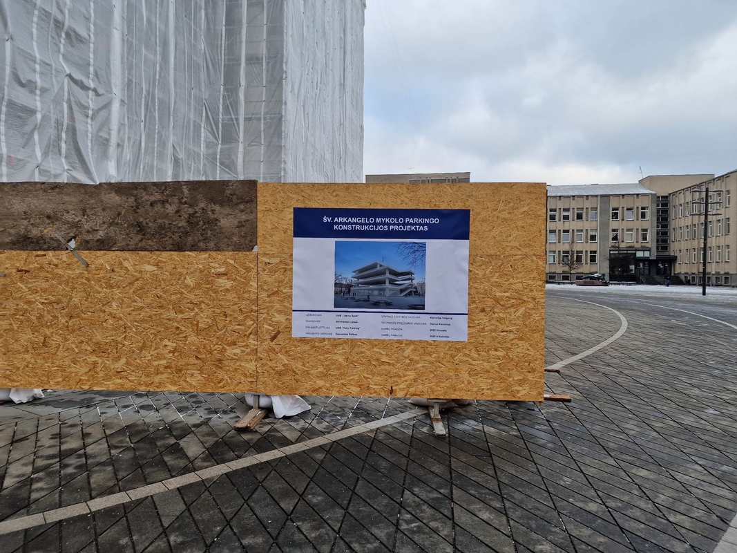 Gana tikroviškai sukurtas plakatas skelbia, kad vietoje šios bažnyčios iškils daugiaaukštė stovėjimo aikštelė.