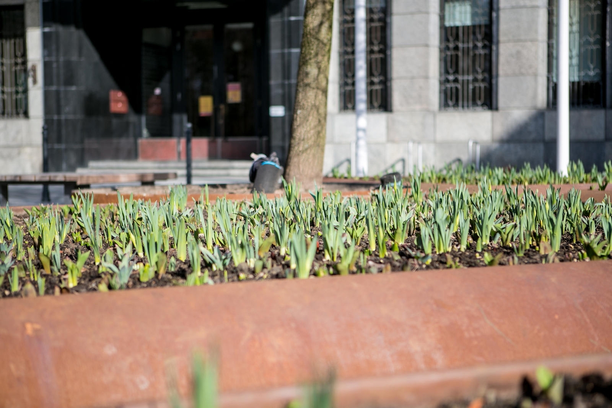 "Kauno diena" pasidomėjo, kokios gėlės šiais metais pasodintos pernai nemažai aistrų sukėlusiose surūdijusiose gėlių klombose. Paaiškėjo, kad dabar bus viena gėlių kompozicija, o artėjant vasarai gėlės bus pakeistos kitomis, tad Laisvės alėją papuoš kiti žiedai.