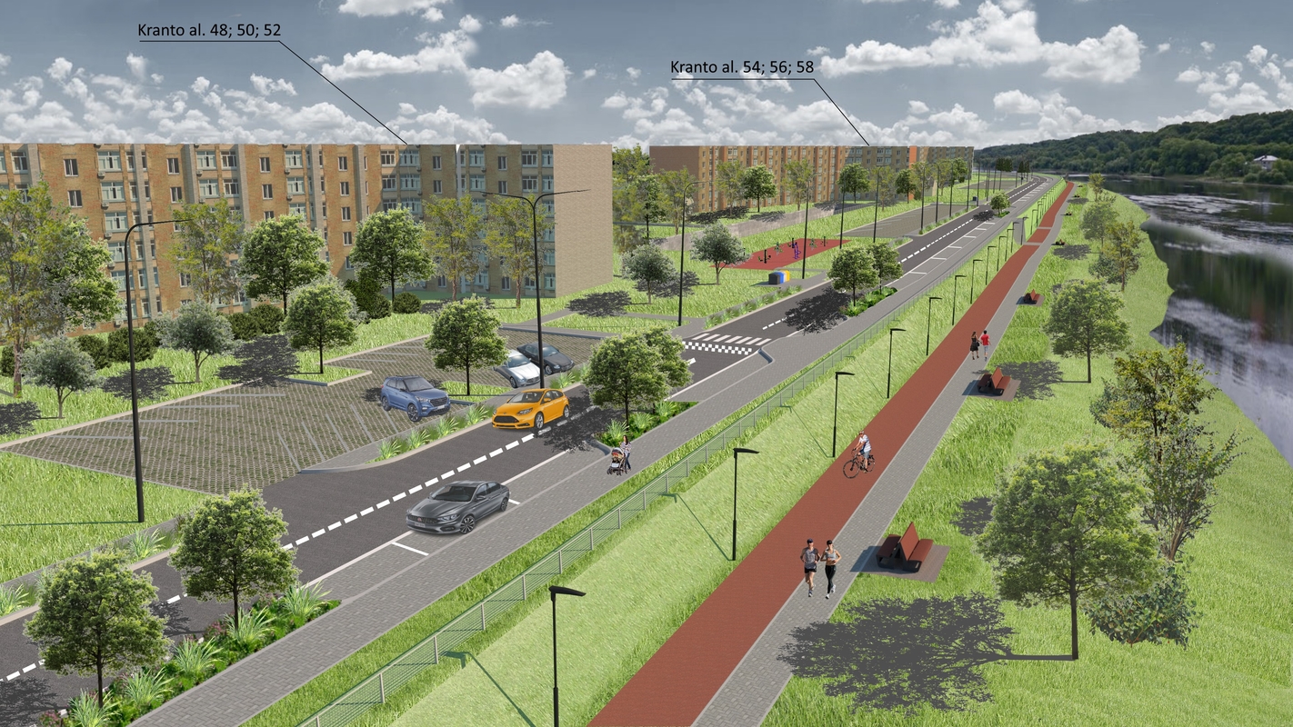 Čia yra būtinas teritorijos apkantavimas, įrengiant kelią su suplanuota žaliąja priekrantės teritorija, erdviomis pėsčiųjų ir dviračių trasomis, važiuojamosios dalies praplėtimu automobiliams parkuoti, poilsio aikštelėms, taip pat saugioms perėjoms iš gyvenamosios zonos iki akvatorijos“, – planuojamus pokyčius Nemuno krantinėje komentavo prof. habil. dr. J. Vanagas.