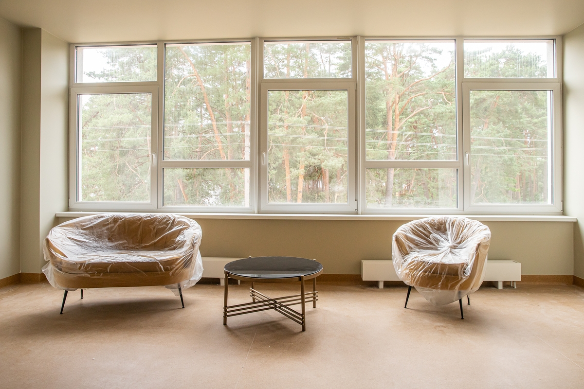 Sparta: vienose patalpose jau statomi baldai, kitose dar vyksta remonto darbai. Regimanto Zakšensko nuotr.